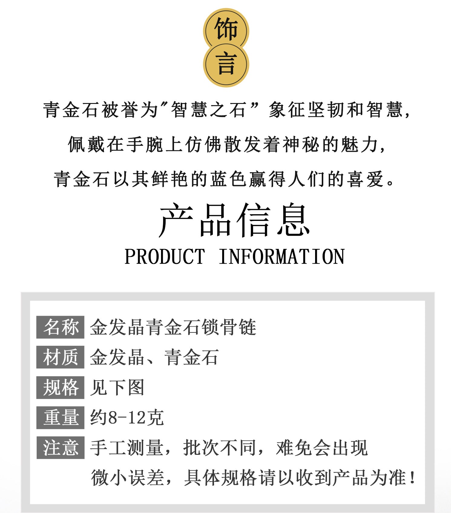 In feng shui practices, golden crystals are placed in wealth corners to attract financial luck, while lapis lazuli is used to stimulate intellectual growth and communication. This necklace, with its elegant chain and subtle luxury, acts as a portable feng shui tool, bringing these benefits wherever you go. As the ancient saying goes, "When the heart is pure, fortune follows." This piece encourages not just external success but inner refinement.