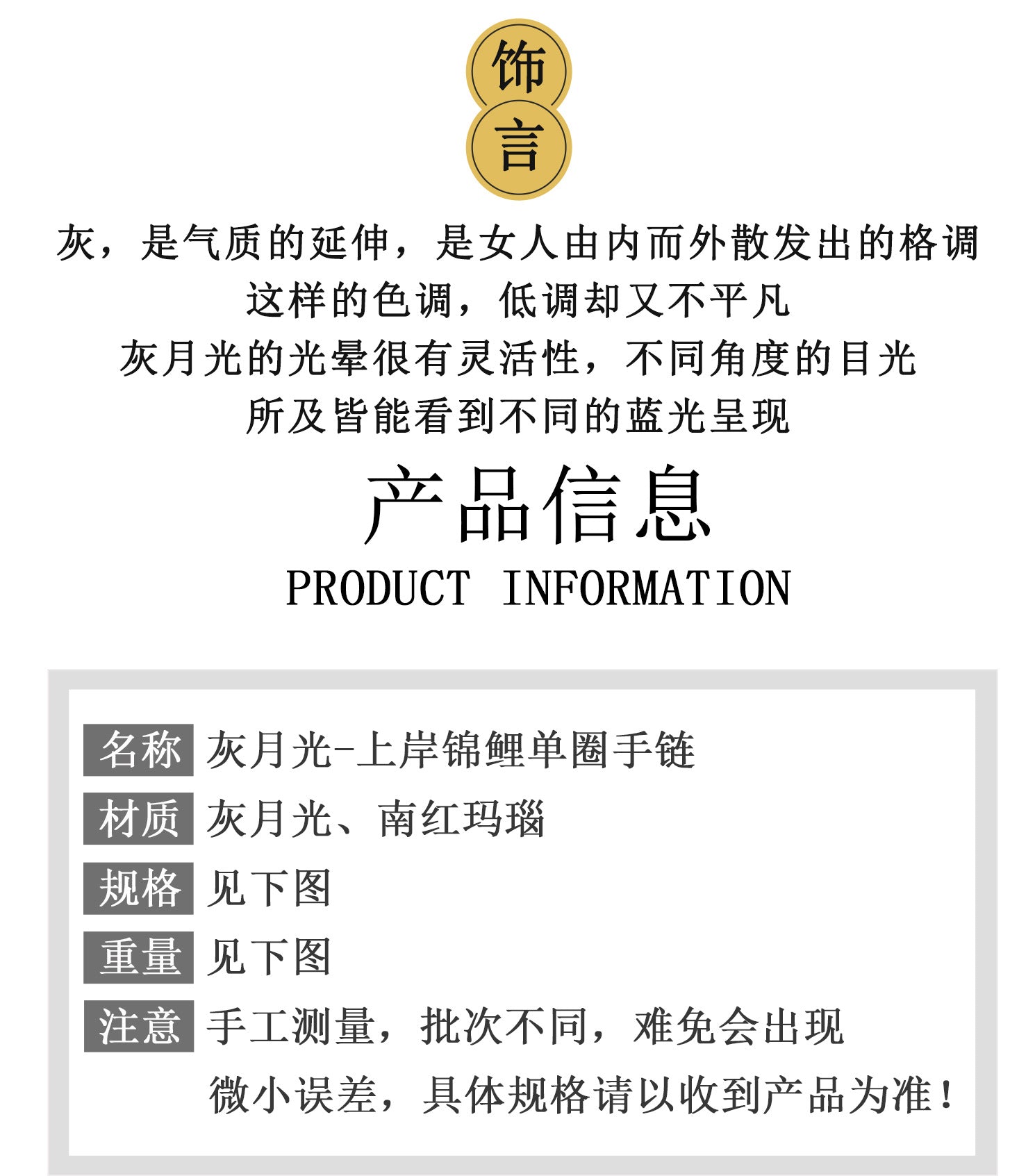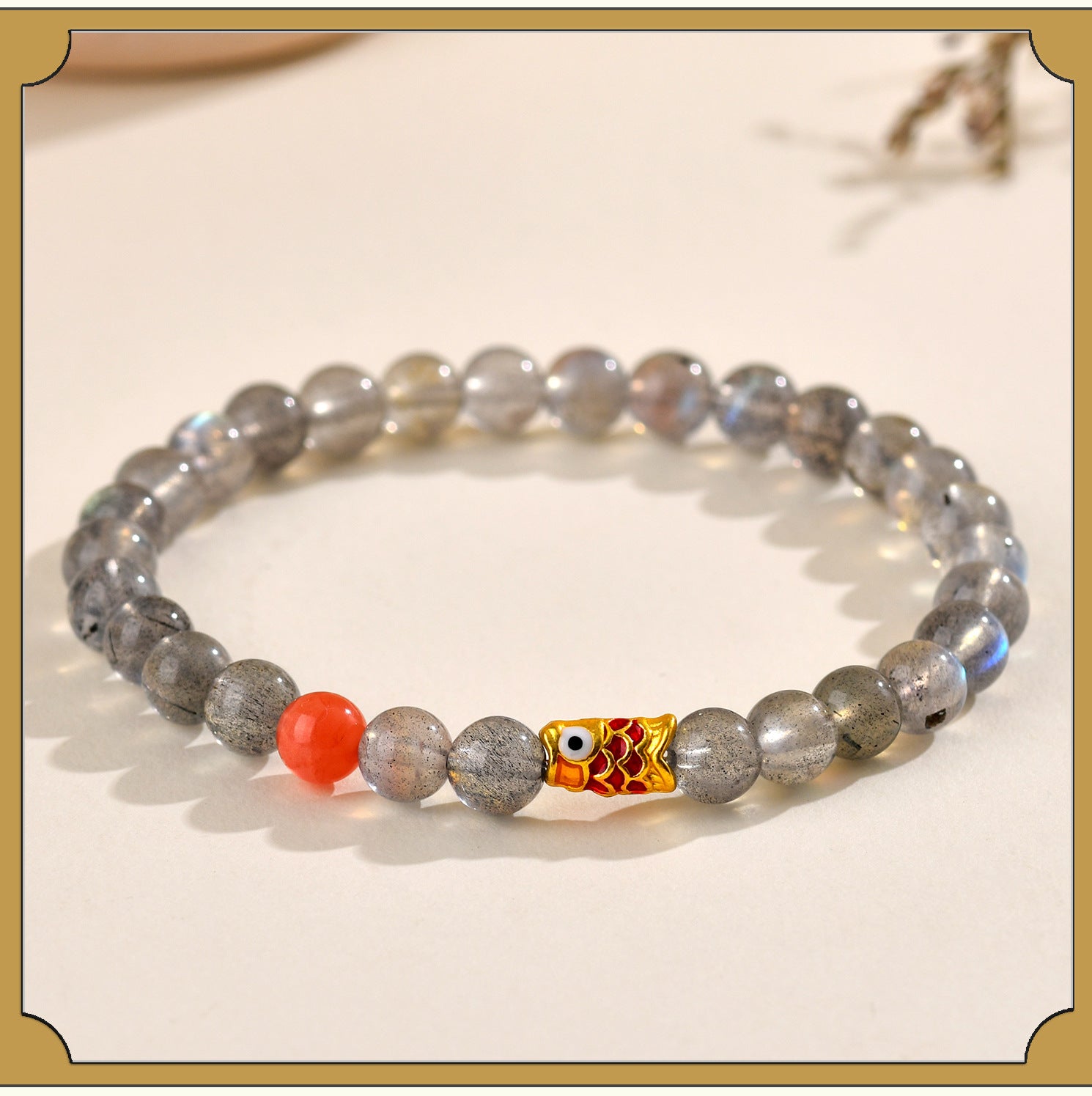 This bracelet embodies that relentless spirit, with its gray moonstone beads promoting mental clarity and the koi fish charm inspiring determination. Worn by students, it serves as a reminder to persist in their studies, turning obstacles into opportunities for growth.