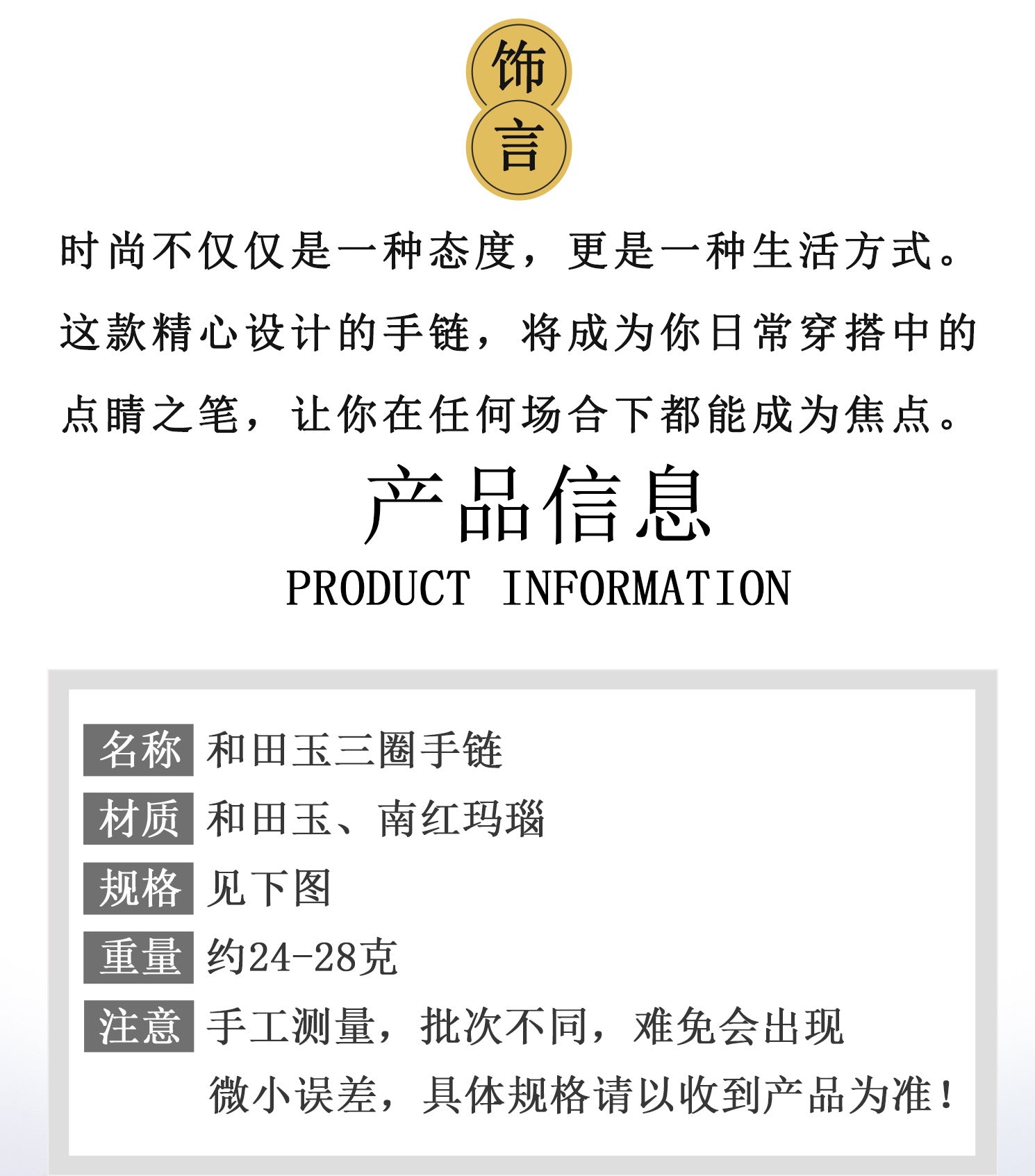 In feng shui traditions, jade is known to attract wealth and protect against misfortune, while red agate stimulates courage and passion. The three-circle design amplifies these benefits, forming a protective loop that circulates auspicious energy around the wrist. As the ancient saying goes, "When the heart is pure, fortune follows." This bracelet serves as a tangible reminder to nurture kindness and integrity, for true abundance springs from within.