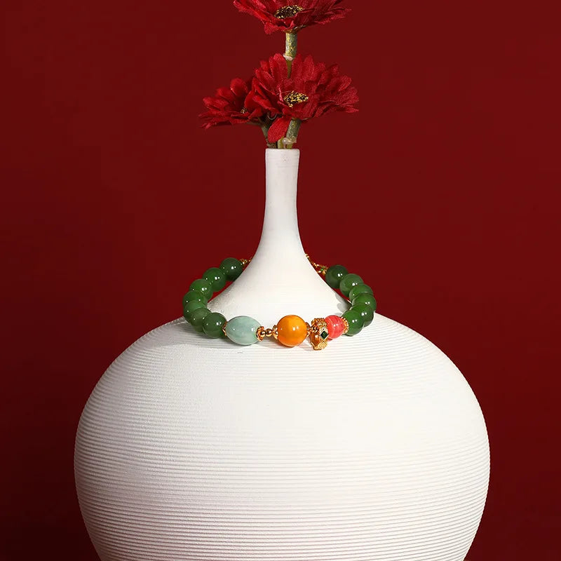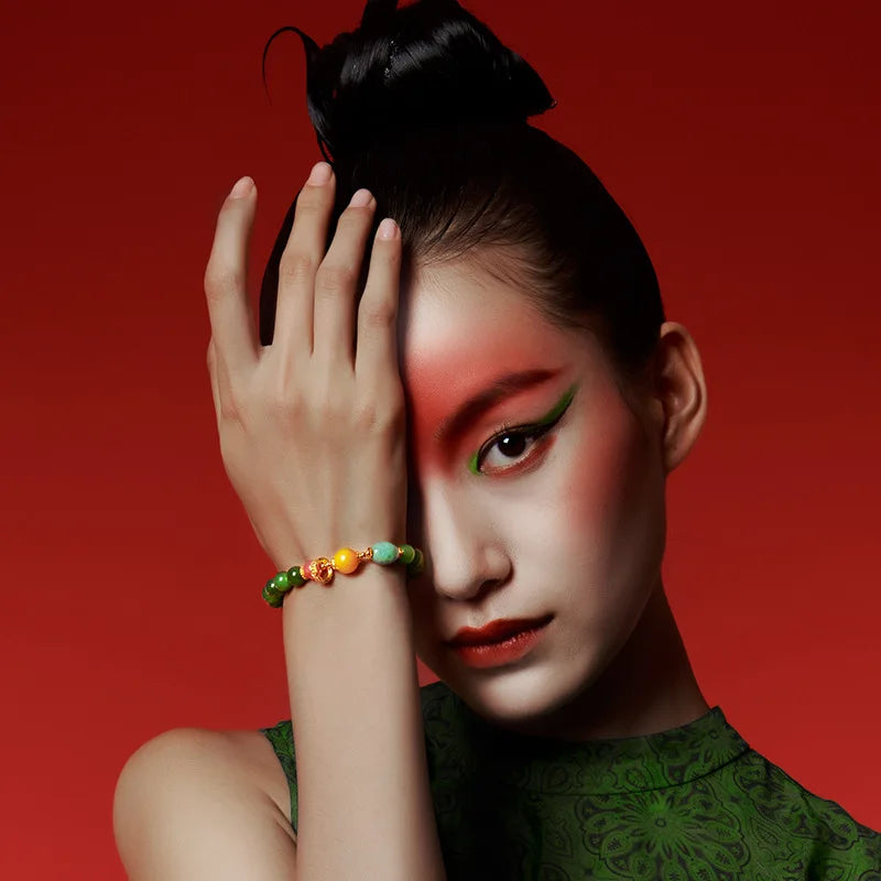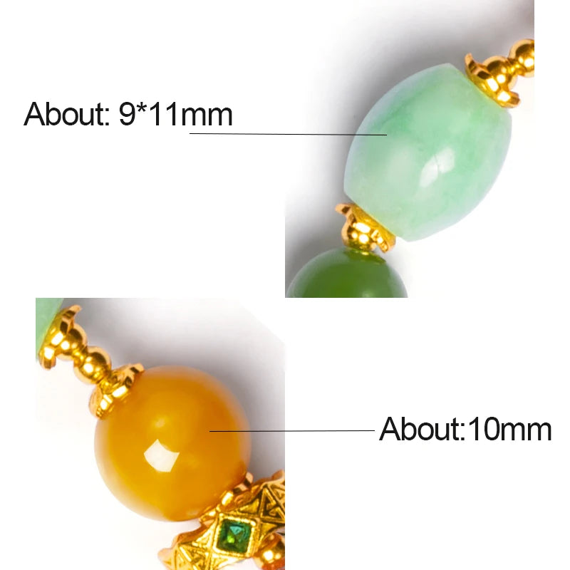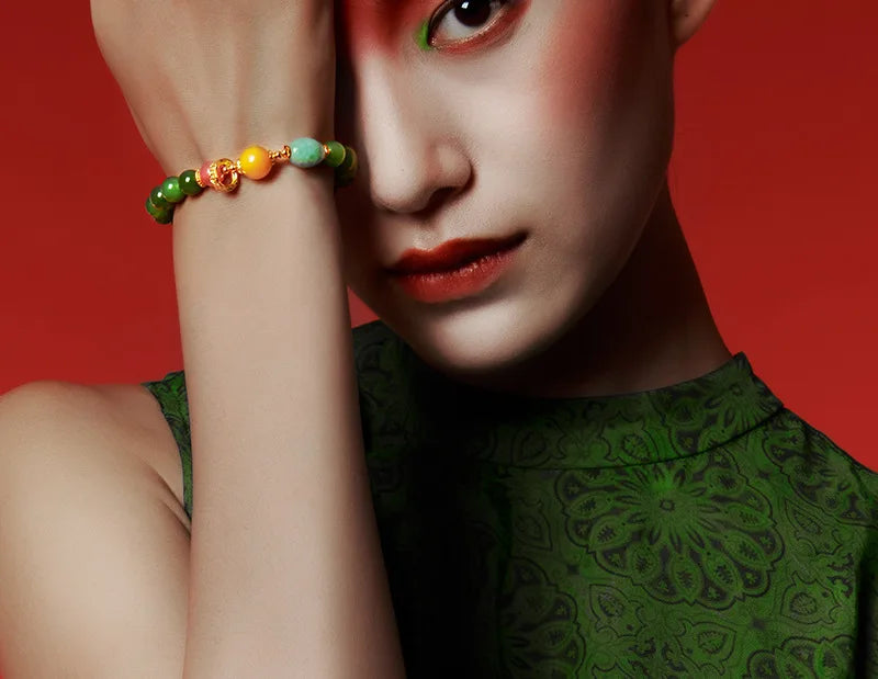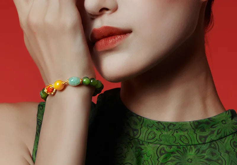 Respectful of tradition yet resolutely modern, this Hetian jasper and wax amber hand chain offers a small, wearable altar: earth-born stones, metalwork rooted in craft, and a design that invites pause. Let it serve not as superstitious promise but as a companion on the path: to steady the heart, refine taste, and remind the wearer that calm intention is the truest adornment.