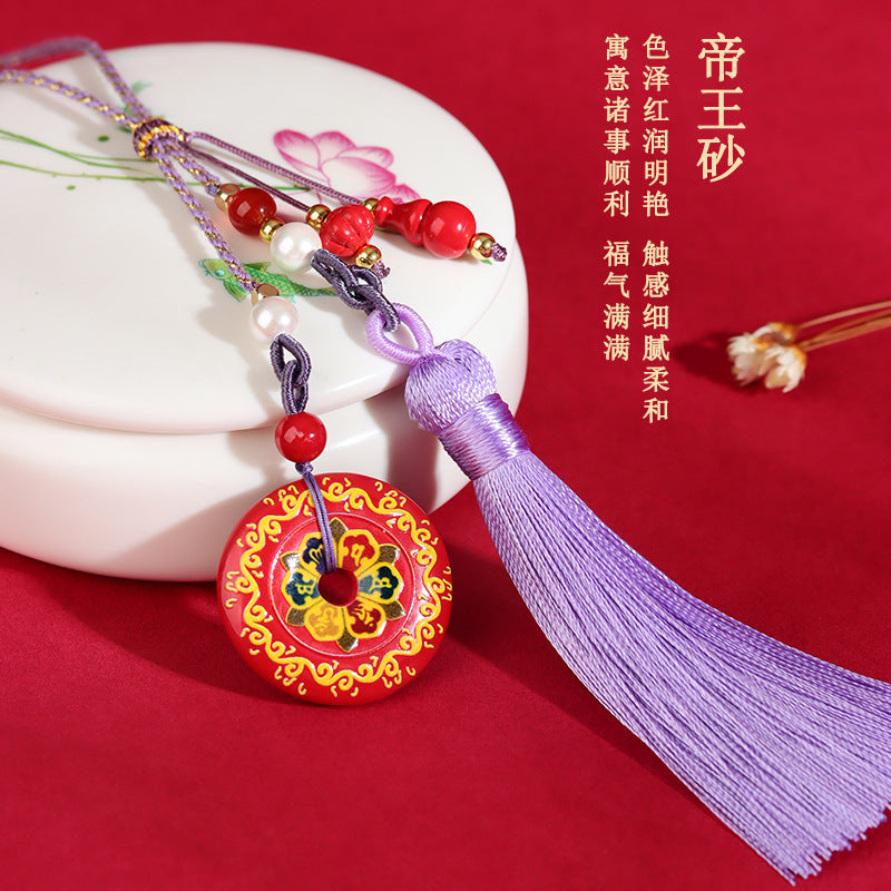 Engraved upon the cinnabar surface, these sacred syllables serve as a constant reminder to cultivate kindness and mindfulness. The pendant's peace buckle design further symbolizes the unbroken cycle of harmony, aligning with the Daoist principle of wu wei—effortless action—whereby one flows with the natural order to attract goodwill and avert misfortune.