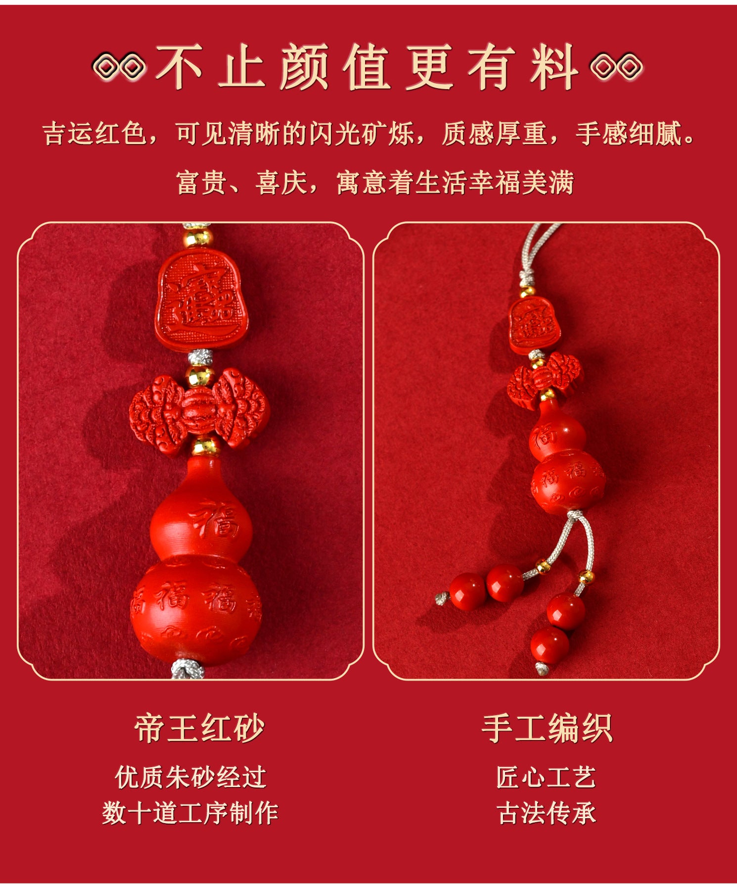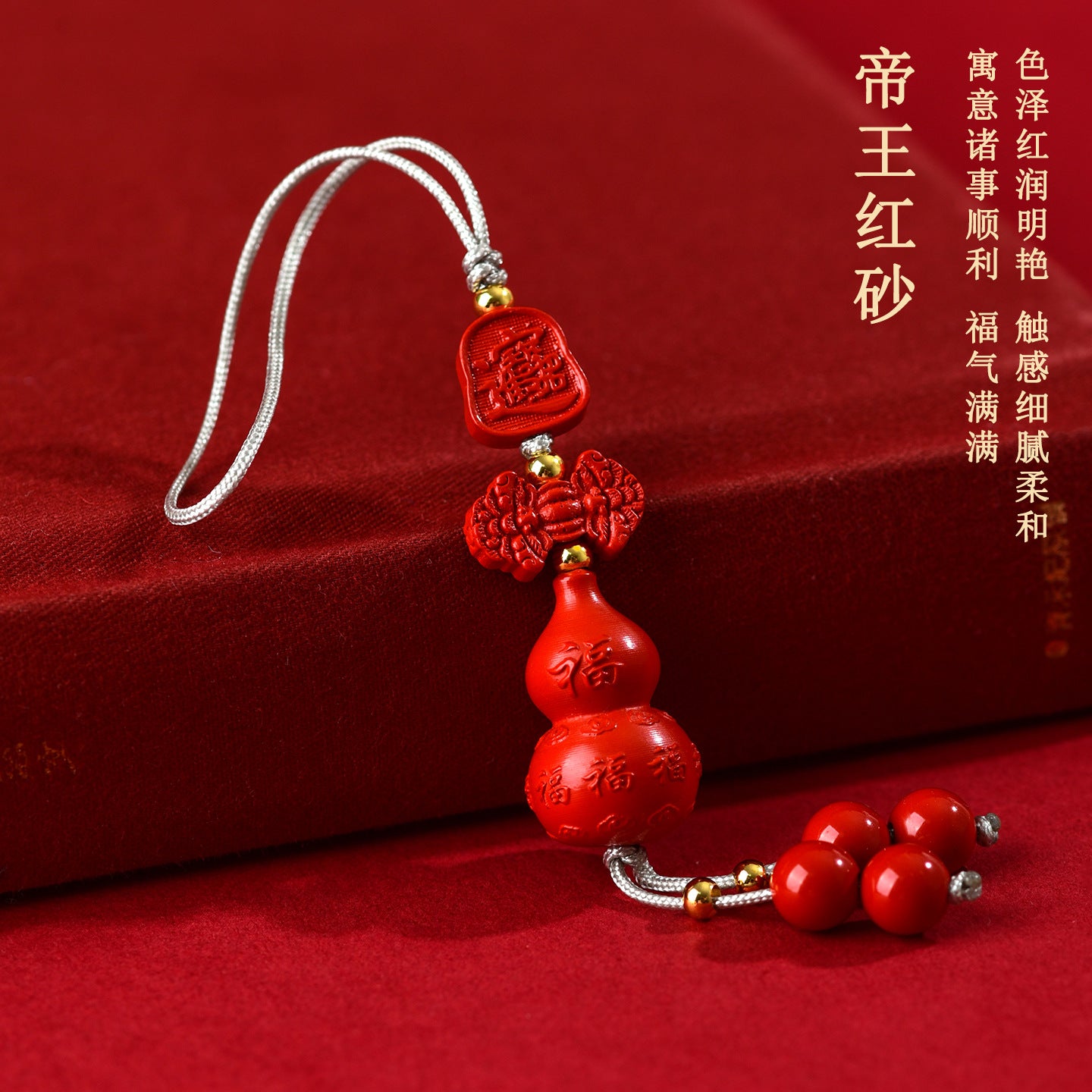 This reflects the gourd's role in gathering good fortune, much like how this pendant serves as a vessel for positive energy. Cinnabar, with its vibrant red hue, aligns with the fire element in the Five Phases, stimulating passion and courage. Wearing it close, as a phone chain or bag ornament, helps harmonize one's aura, turning everyday moments into opportunities for growth and protection.