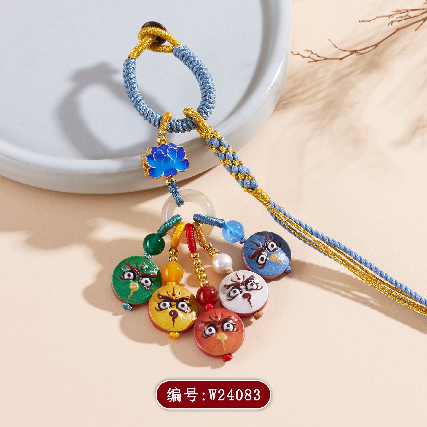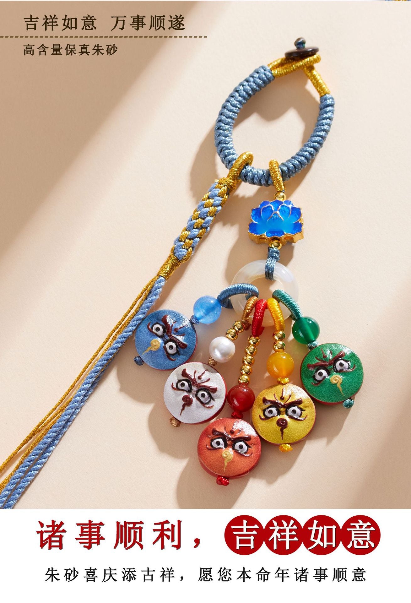 In ancient Chinese tradition, cinnabar is revered as the 'essence of the south,' a stone of fire element that wards off evil and attracts prosperity. This Natural Imperial Red Cinnabar Keychain is crafted with high-content cinnabar, hand-painted with the Five-Way God of Wealth, embodying the harmony of cosmic forces. The deep red hue symbolizes vitality and protection, while the intricate design invokes the blessings of wealth from all directions.