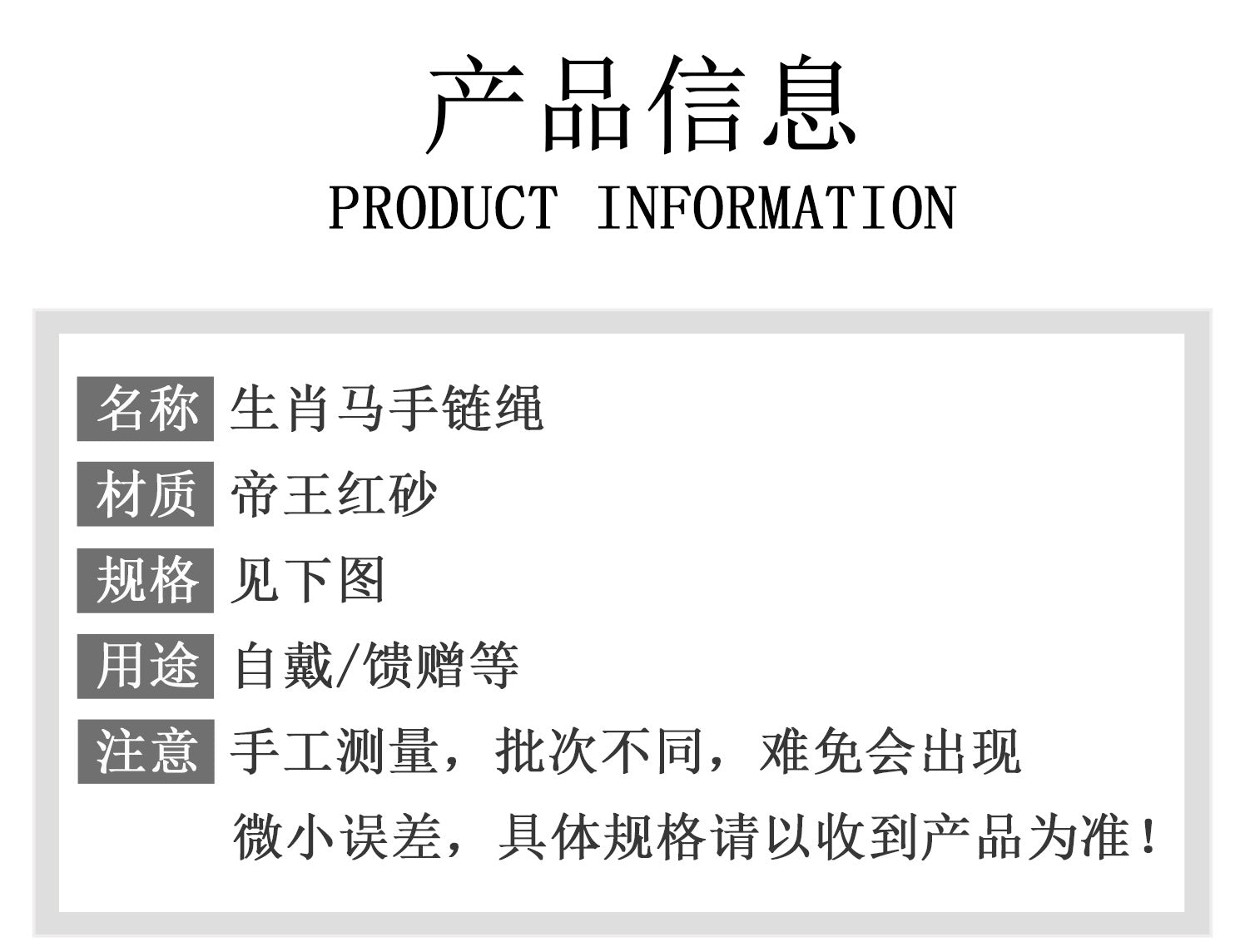 In ancient Chinese lore, cinnabar is revered as the \"essence of the earth,\" a stone of fire and vitality that has been used for millennia in rituals and artifacts for its protective qualities. Known as \"dan sha\" in classical texts, it symbolizes the sun's energy and is believed to ward off malevolent forces while attracting prosperity. This Natural Imperial Red Cinnabar Zodiac Horse Bracelet embodies this legacy, crafted from high-content cinnabar beads strung on a handwoven red string, with a zodiac horse charm that echoes the wisdom of the Chinese astrological cycle.