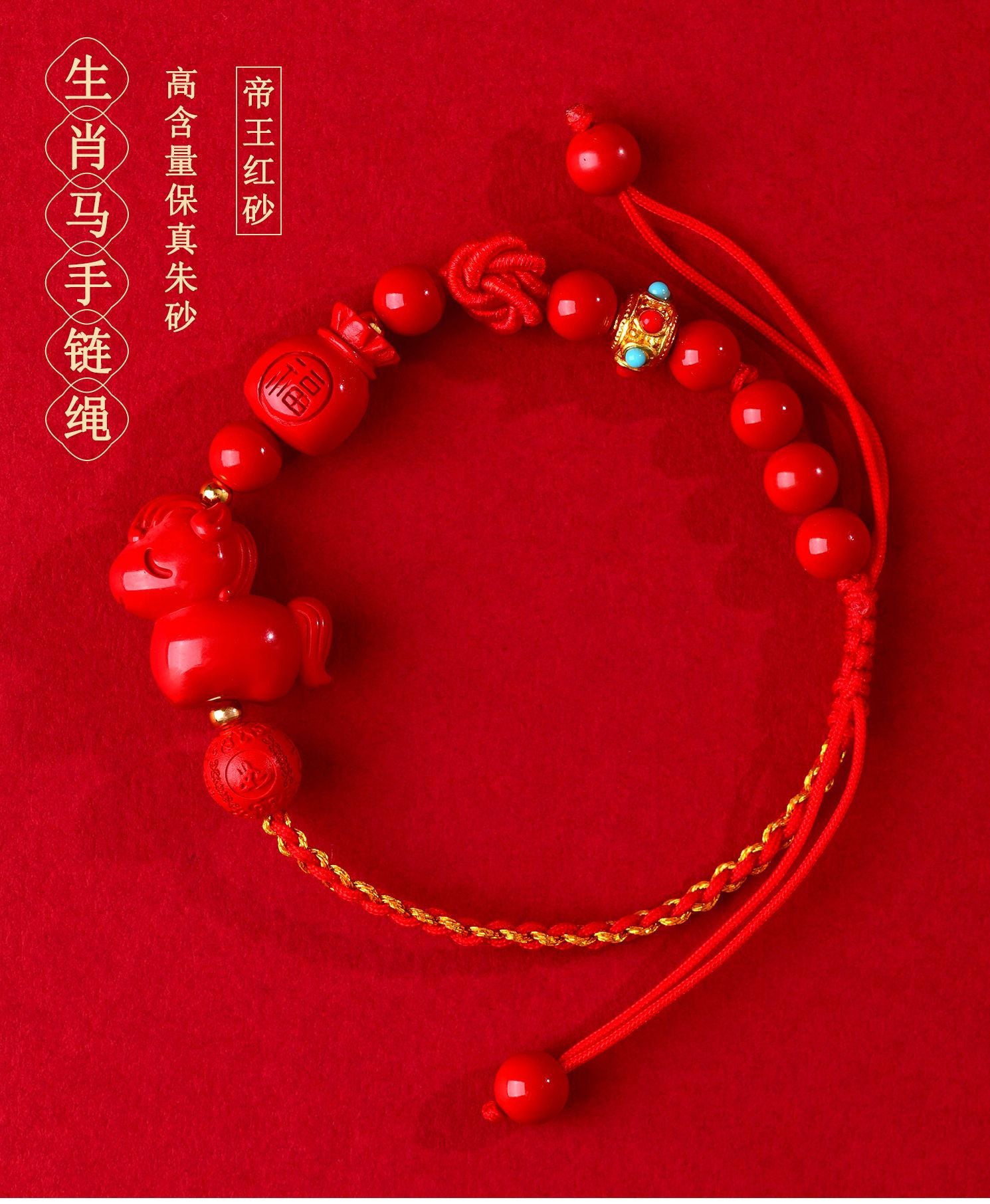 This aligns with the horse's nature—always advancing, never stagnant. Wearing this bracelet invokes the horse's dynamic energy, helping the wearer overcome obstacles and seize opportunities. The cinnabar, with its deep red hue, amplifies this by fostering courage and clarity, much like the fire element in Five Elements theory, which fuels growth and transformation.
