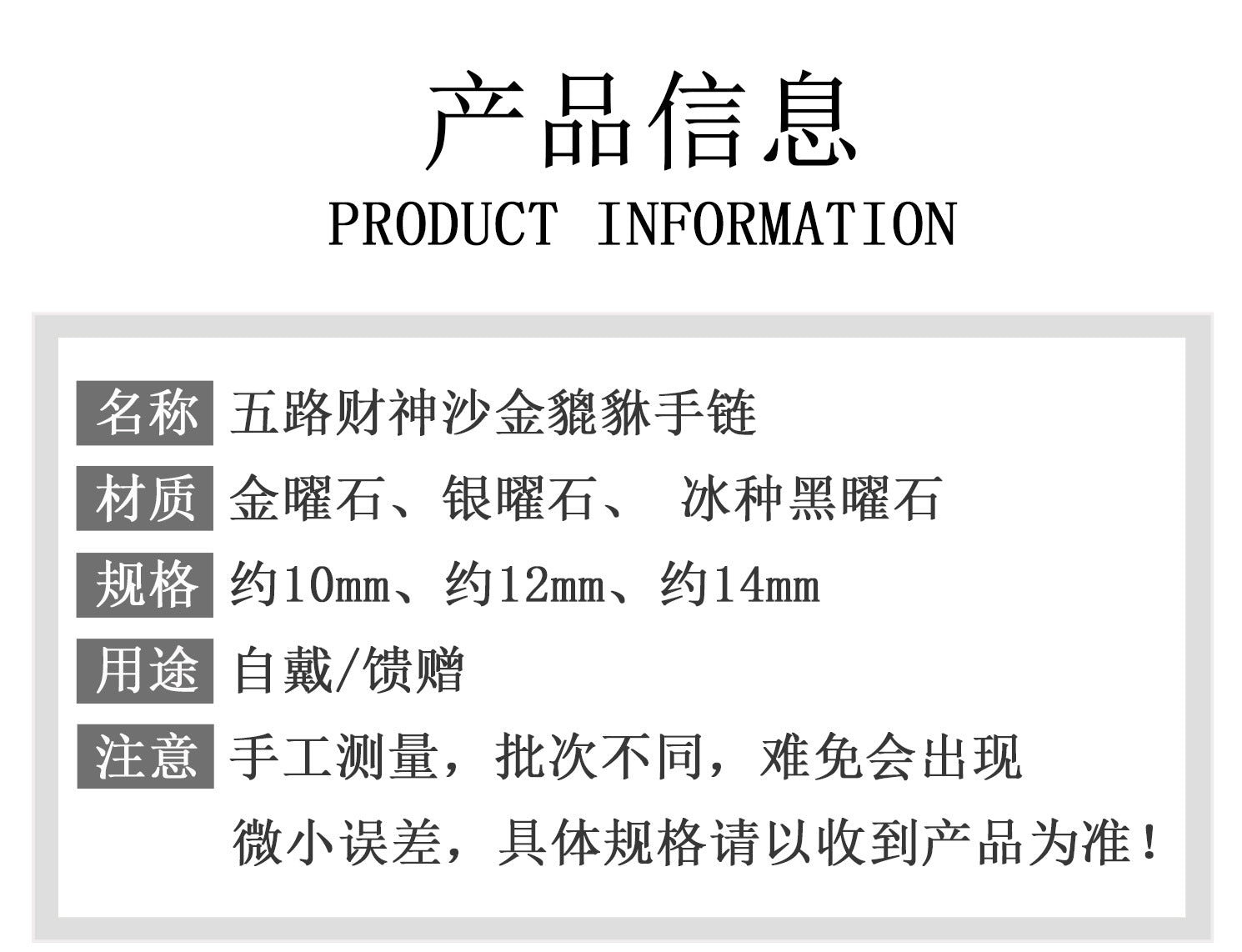 Moreover, the bracelet's unisex appeal echoes the universal Tao—the idea that balance transcends gender. Whether worn for meditation or daily life, it encourages mindfulness and gratitude. As an ancient proverb says, "Fortune follows the prepared heart." By embracing this symbol of abundance and protection, you not only adorn your wrist but also cultivate an inner sanctuary of peace and potential. Let the ice obsidian's clarity illuminate your path, and the Pixiu's fervor multiply your blessings, guiding you toward a destiny rich in joy and serenity.