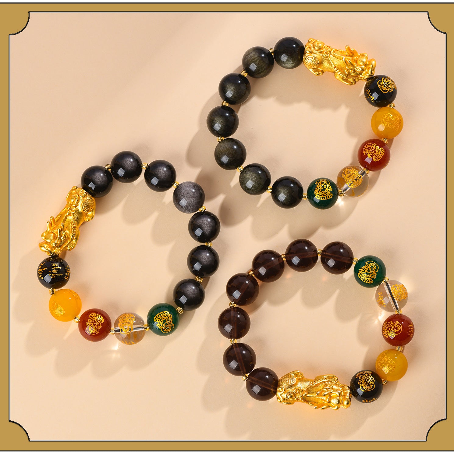 Each piece is carefully crafted to highlight the natural patterns of ice obsidian and Pixiu symbolism.