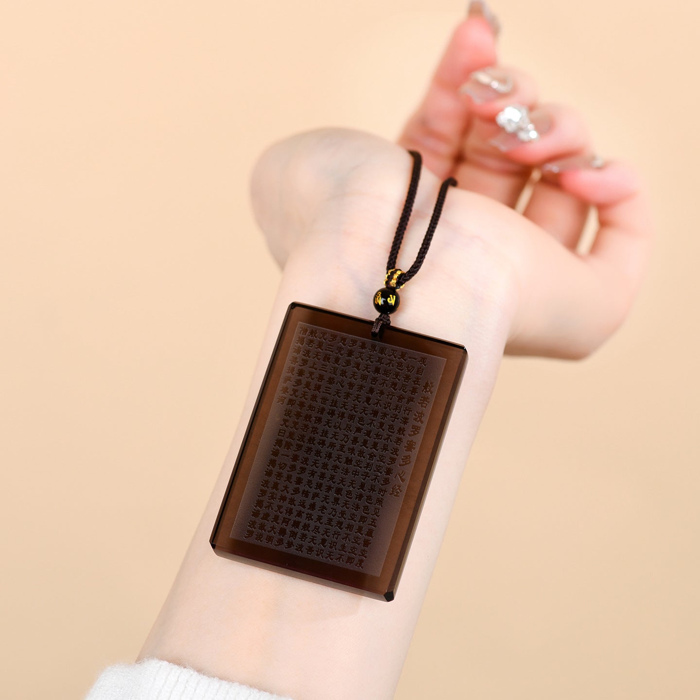 "Form is emptiness, emptiness is form."This profound insight reminds us that worries and attachments are mere illusions, and by embracing this truth, we can attain inner peace. This pendant harmoniously unites these elements, serving as a tangible symbol of无忧 (no worries) and spiritual awakening.