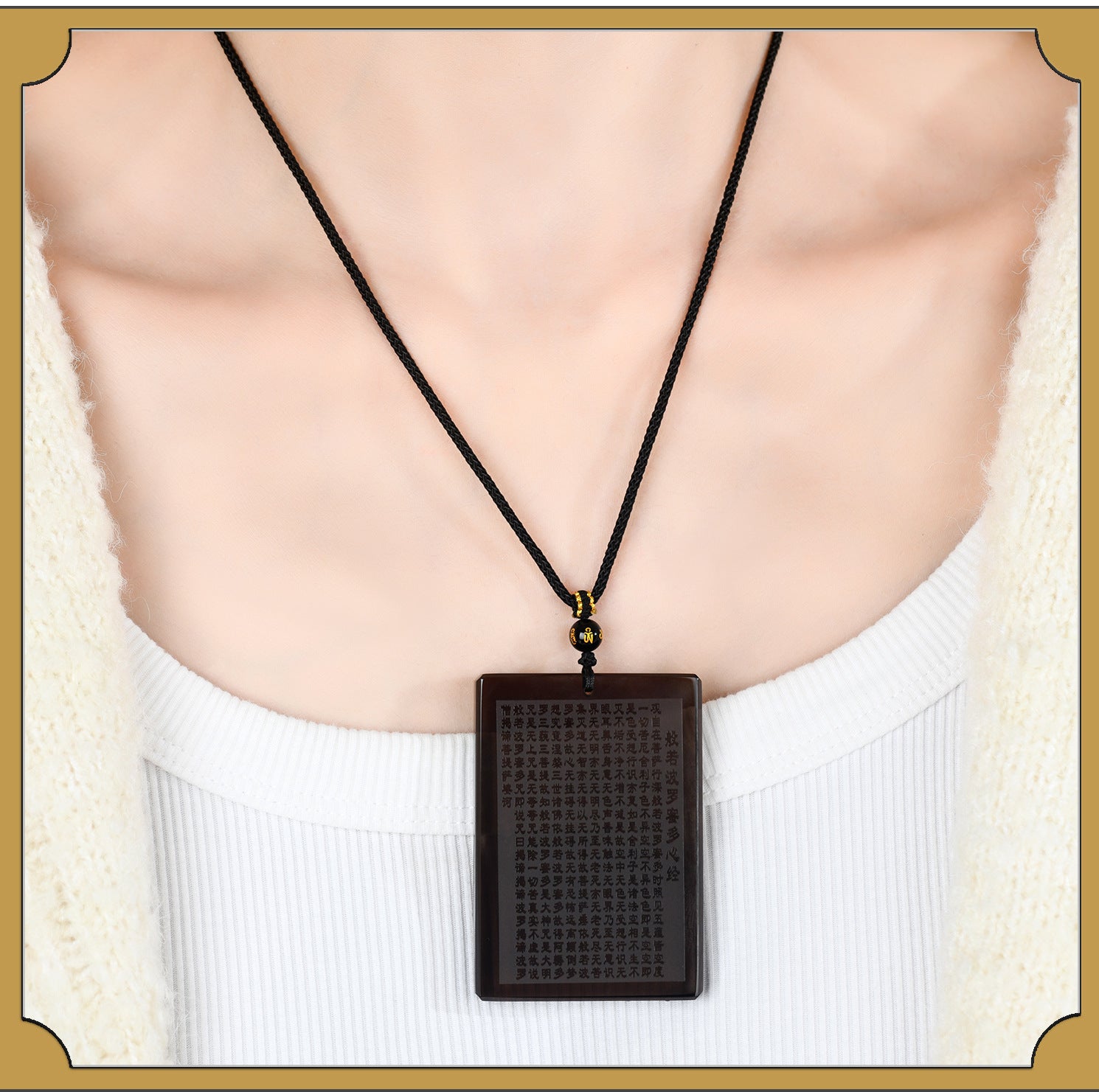 Throughout history, obsidian has been used in rituals for its grounding properties, while the Heart Sutra's teachings have guided countless seekers toward liberation. Together, they form a powerful talisman that not only beautifies but also elevates the spirit. As you adorn this pendant, let it be a reminder to cultivate mindfulness and compassion, unlocking the door to boundless joy and protection.