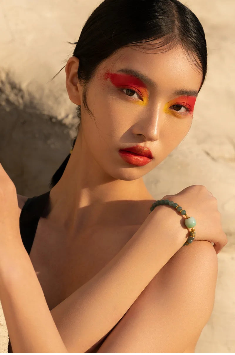 道家思想讲求“一阴一阳之谓道”,本手链将翠绿与透明相合,正是阴阳互济、相安为用的象征:绿玉主生气与安稳,水晶主明净与透彻,二者合而为一,形成和衷共济的能场。佩之者可在忙碌与纷扰中,得一隅清静;在决断与抉择时,生一缕明晰。