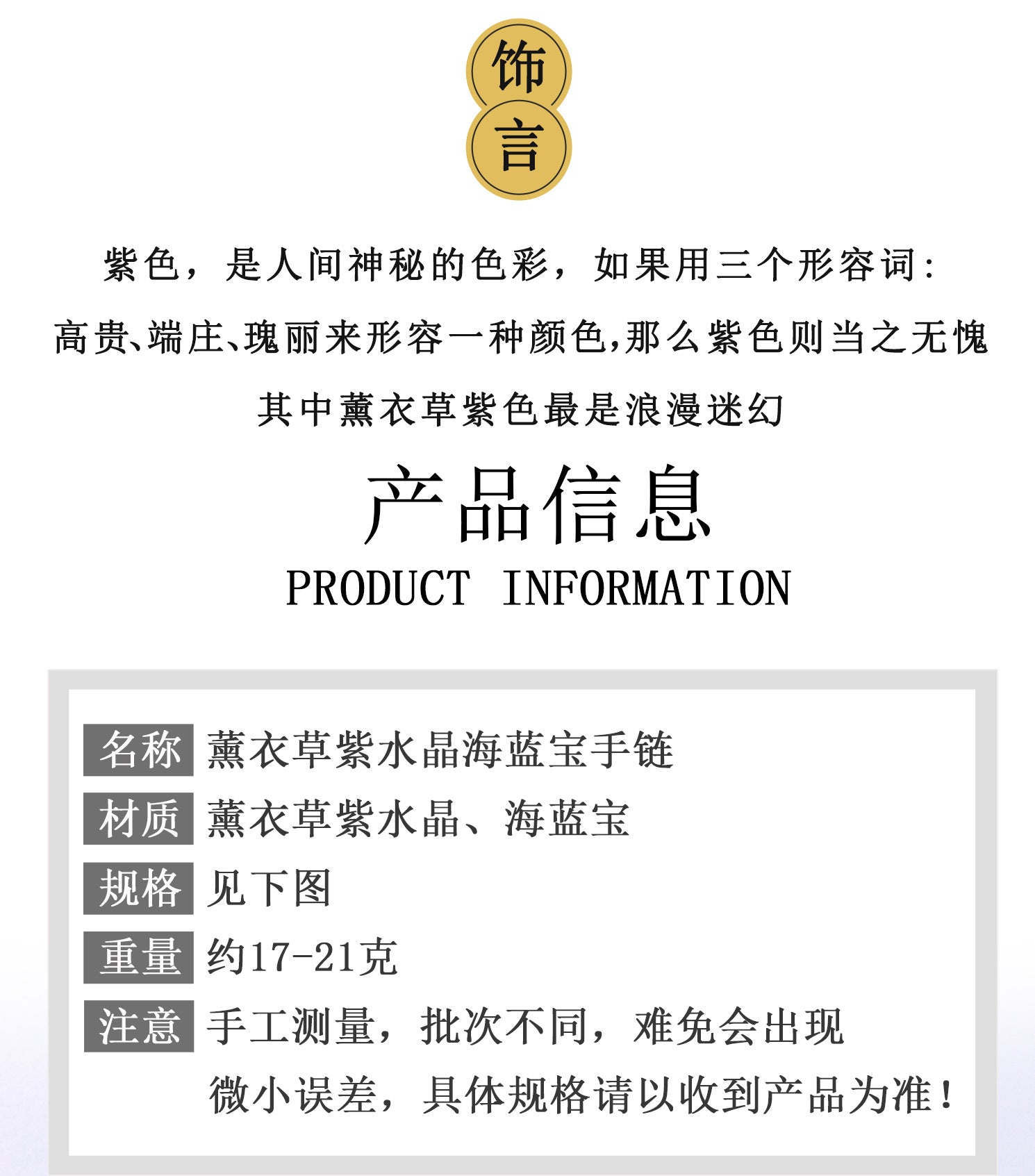 This bracelet, with its half blue, half purple design, embodies this wisdom. The blue Aquamarine represents the fluidity of water, promoting communication and emotional healing, while the purple Lavender Amethyst connects to the higher mind, fostering intuition and peace. Wearing it is like carrying a piece of the balanced cosmos, helping to align your inner world with the natural flow of life.