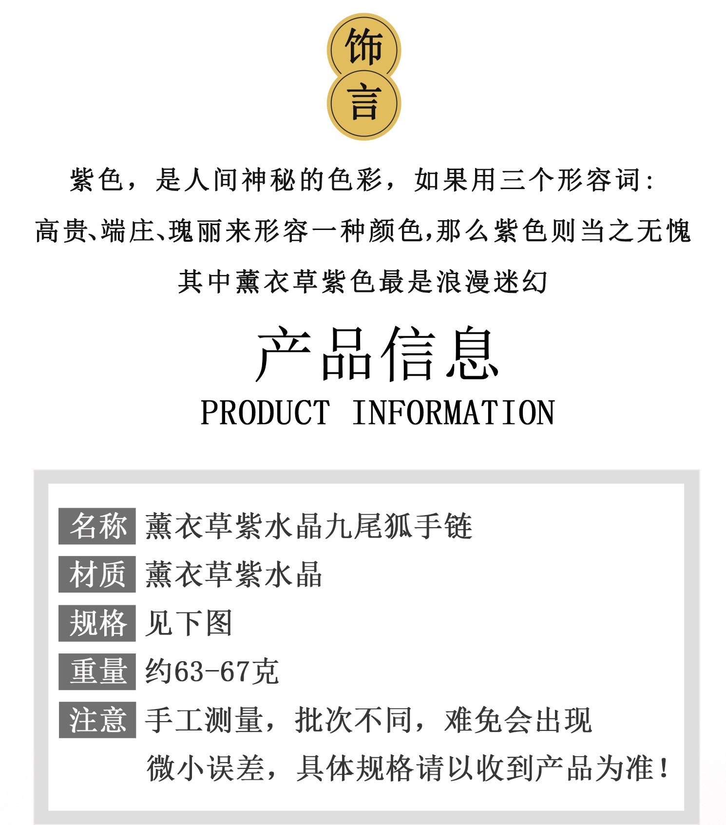 This principle mirrors the essence of the nine-tailed fox, which gains a tail every century, embodying the accumulation of experience and the art of navigating life's complexities. Each amethyst bead, carefully selected and polished, represents purity and stability, allowing the wearer to embrace change without losing inner balance.