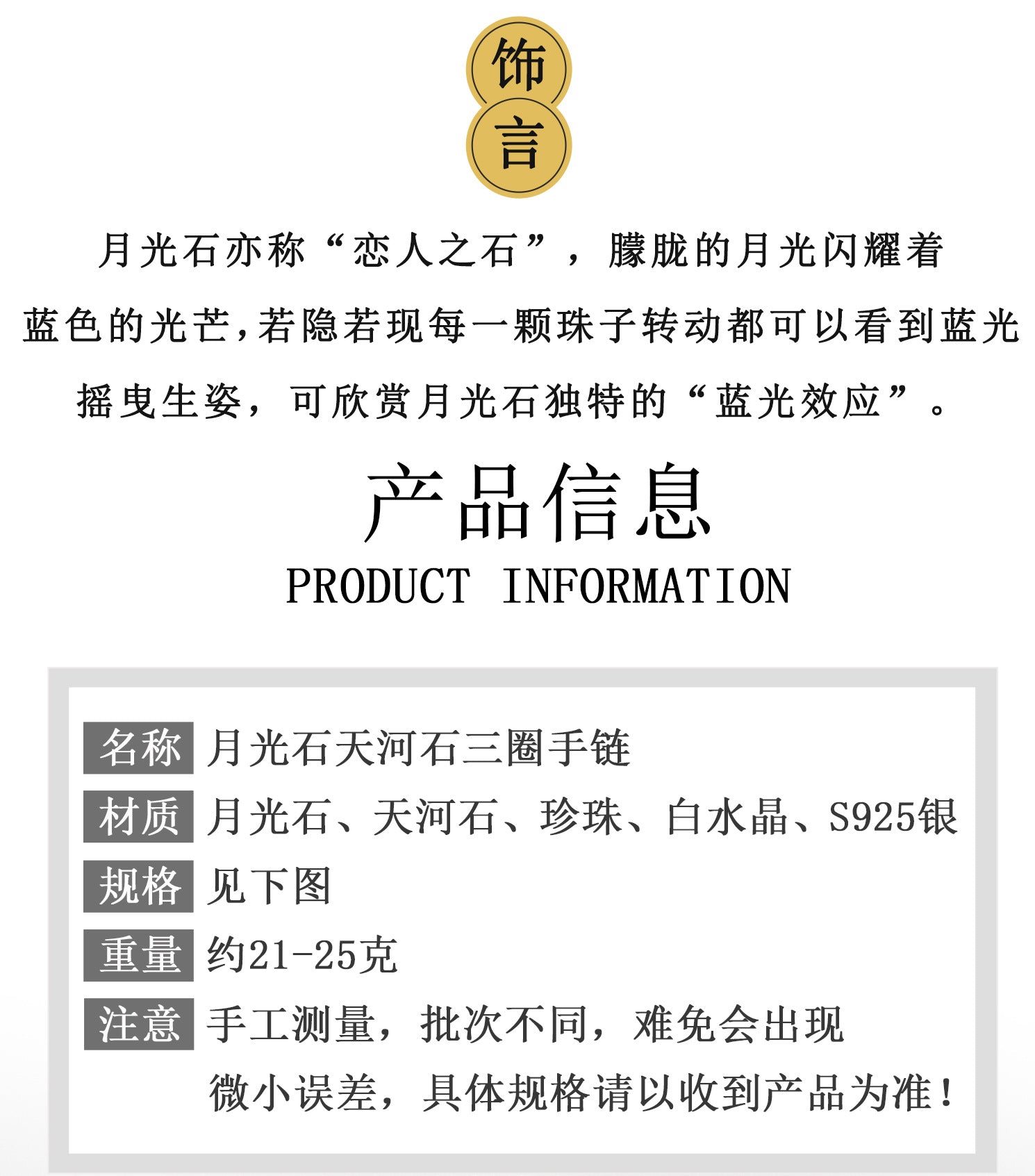 | Material | Natural Moonstone, Tianhe Stone, Pearl, S925 Silver |
