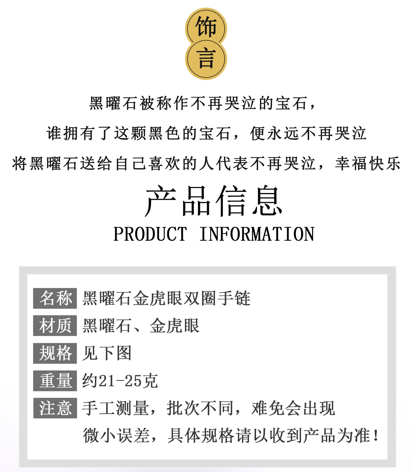 From a feng shui perspective, this bracelet acts as a portable talisman. Obsidian is known to absorb and transform negative chi, while gold tiger eye enhances wealth corners in your environment. Worn on the left wrist, it draws in positive energy and prosperity; on the right, it provides a shield against harm. The double circle design amplifies this effect, creating a continuous loop of protection and abundance. As the old saying goes,