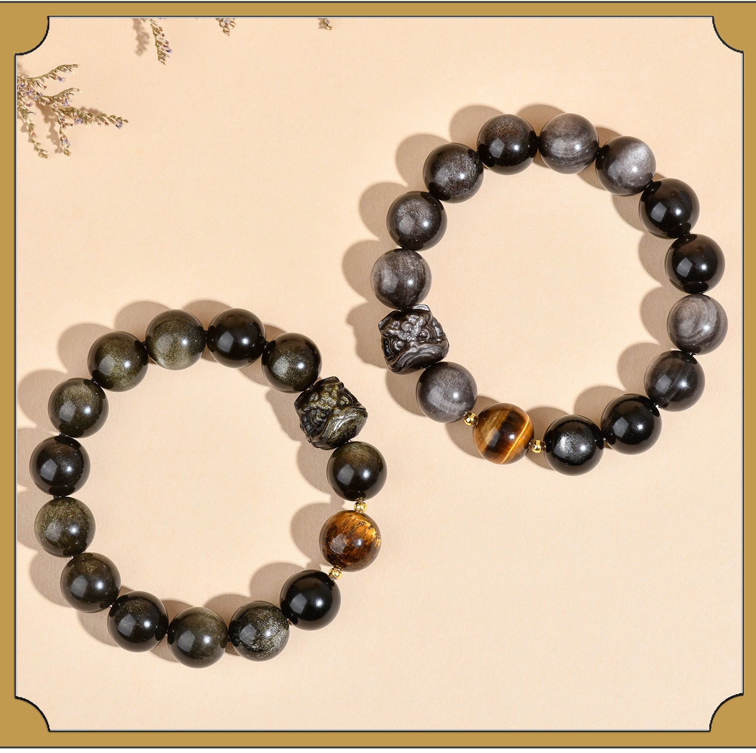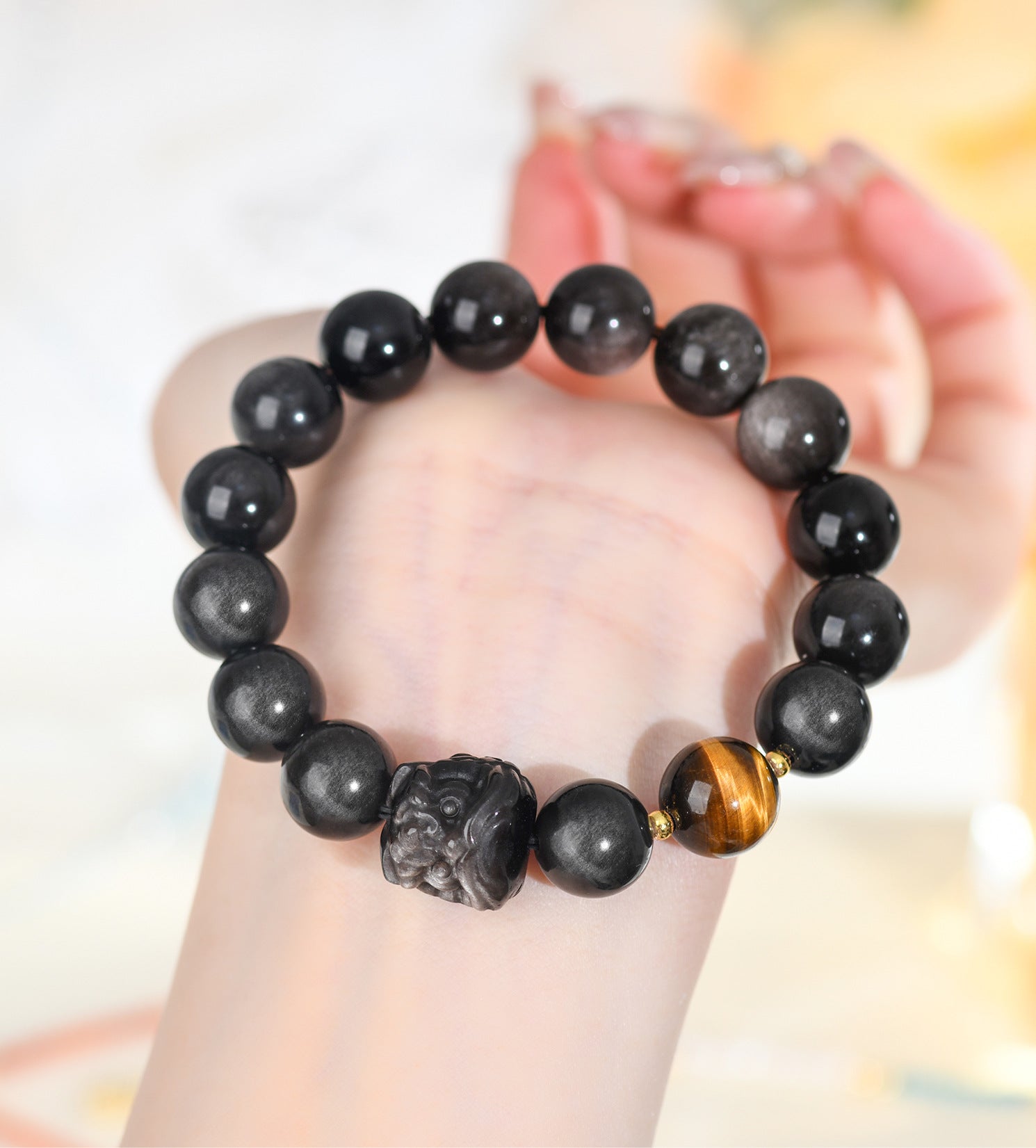 Natural obsidian, formed from volcanic fire, has been cherished across cultures as a stone of profound protection. In ancient Chinese lore, it was called 'the mirror stone' for its ability to reflect negative energies and reveal inner truths. This Natural Obsidian Lion Awakening Bracelet harnesses that primal power, with the lion motif representing the awakened guardian within each of us. The lion, known as the king of beasts in traditional symbolism, embodies courage, authority, and the power to overcome obstacles.