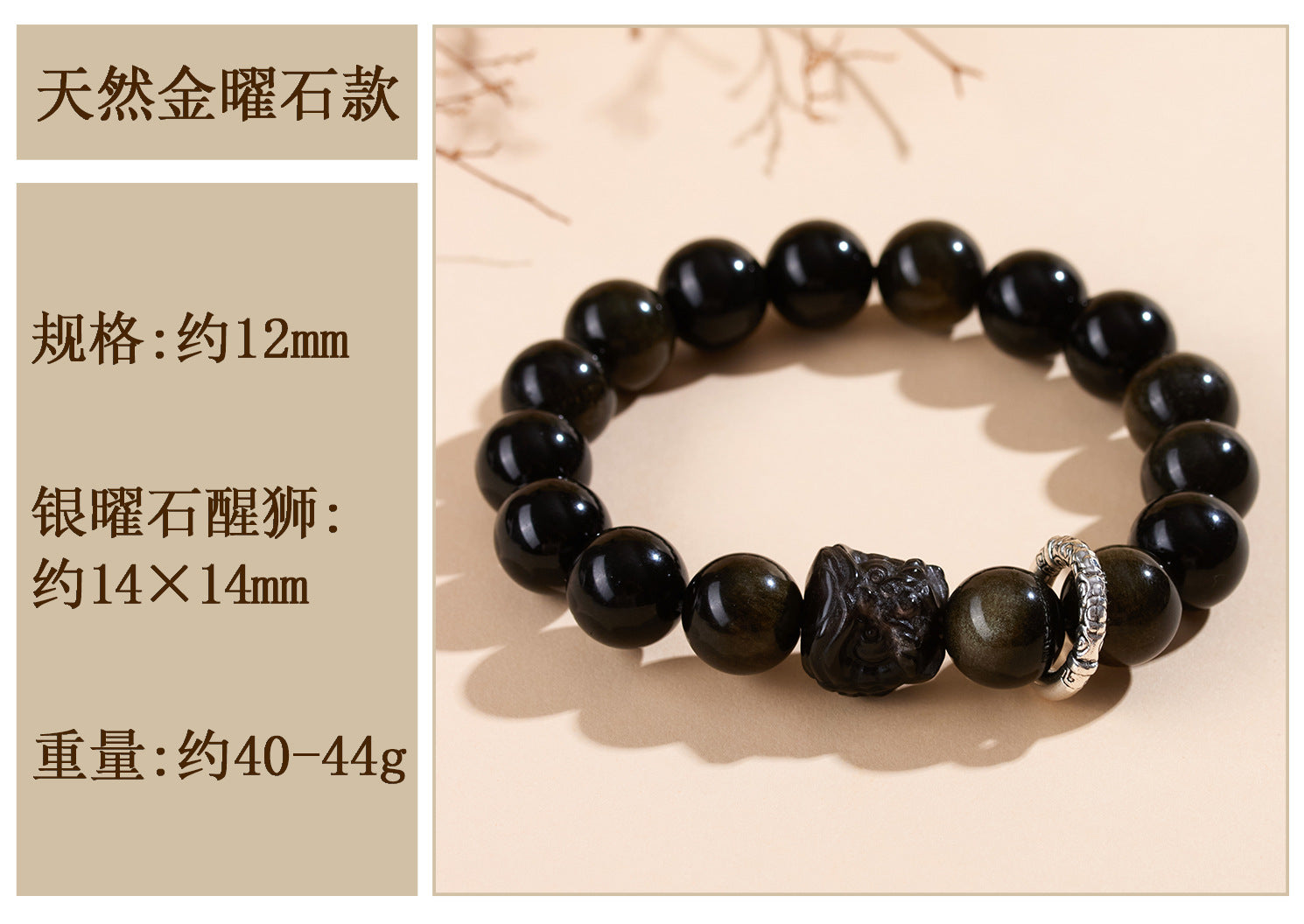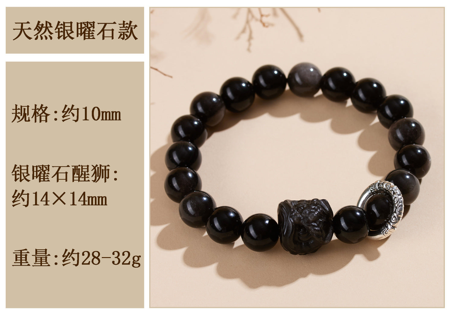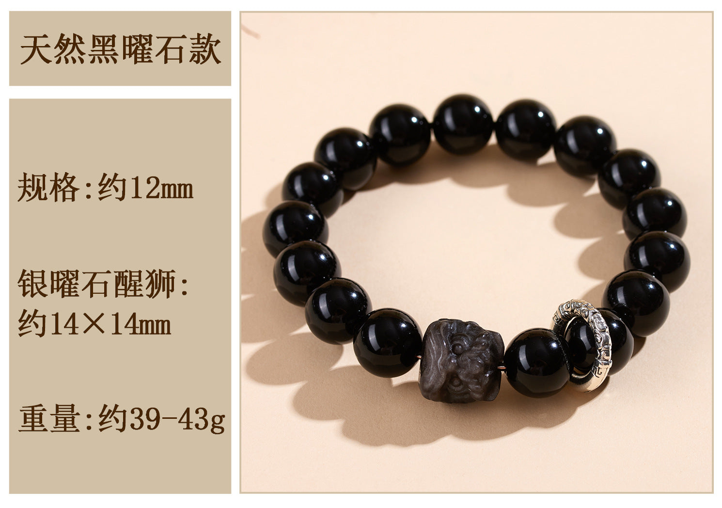 In the annals of Chinese tradition, obsidian has been revered as a stone of profound protection. Known as the \"mirror stone,\" it reflects negative energies and shields the wearer from harm, much like the ancient guardians of folklore. This Natural Obsidian Lion Dance Bracelet draws from this legacy, blending the earthy essence of obsidian with the vibrant symbolism of the lion dance—a performance that dates back to Tang Dynasty celebrations, where it was believed to驱邪辟邪 and invite auspicious fortunes.