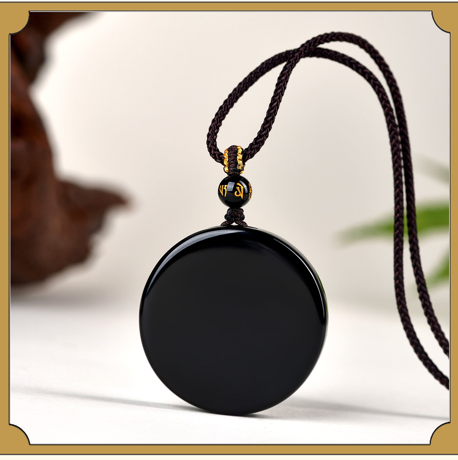 Obsidian, known as the \"stone of protection,\" has been revered since ancient times for its ability to absorb negative energies and promote emotional balance. In Chinese metaphysics, it is often used to harmonize one's aura, especially during the zodiac year—a period believed to be fraught with challenges and transformations. This natural obsidian round pendant necklace embodies the essence of safeguarding and serenity, drawing from deep cultural roots to offer spiritual support.