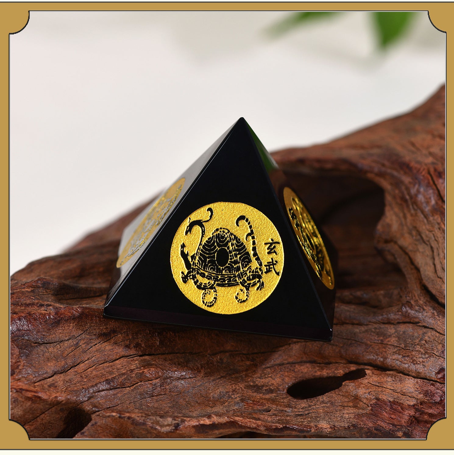 By placing it in your home, you invite a flow of qi (life force) that dispels stagnation and attracts prosperity. In Feng Shui, the four beasts are deployed to fortify environments—Qinglong to the left, White Tiger to the right, Suzaku ahead, and Xuanwu behind—creating a 'celestial animal formation' that safeguards against misfortune. This pyramid condenses that wisdom into a tangible talisman, perfect for modern dwellings seeking ancient blessings.