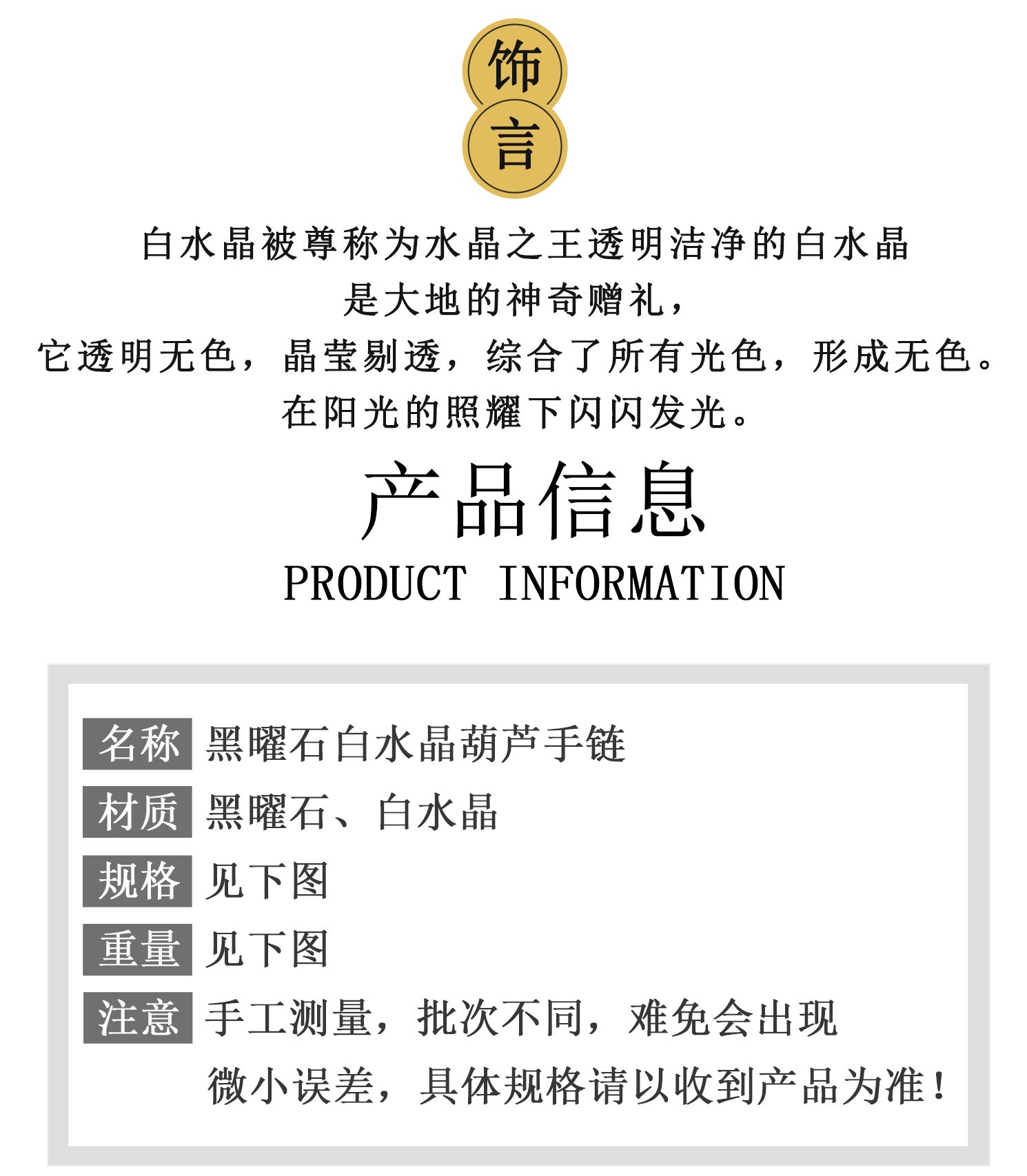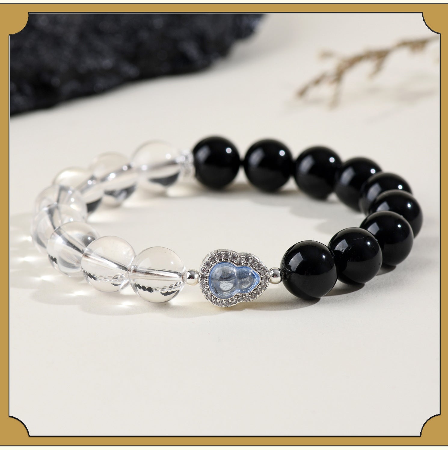 In Feng Shui practices, the gourd is revered for its ability to resolve negative energy (sha qi) and attract health and wealth. Obsidian, known as a "mirror stone," reflects harm away, and white crystal amplifies intentions for abundance. Worn on the left wrist, it draws in auspicious energy; on the right, it acts as a shield. As the ancient proverb goes,