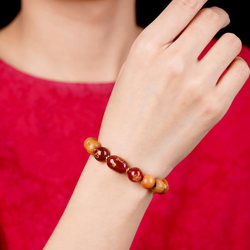 "Heaven rewards diligence, and earth bears fruit."This wisdom mirrors the bracelet's essence: through steadfast effort and virtuous living, one can attract abundance. The peach wood, with its yang energy, dispels stagnation, while the agate grounds the soul, fostering a balance akin to the Taoist principle of yin and yang. In this harmony, wealth flows not as mere material gain, but as a manifestation of inner peace and outward grace.