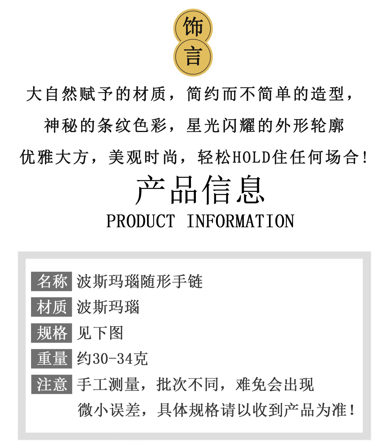 Persian agate, known as a stone of protection and harmony, has been revered since ancient times for its connection to the earth's natural energies. This Natural Persian Agate Irregular Single Circle Bracelet embodies the essence of balance and resilience, with its irregular patterns reflecting the untamed beauty of nature. In traditional beliefs, agate is said to stabilize the aura and eliminate negative energies, making it a powerful talisman for modern life.