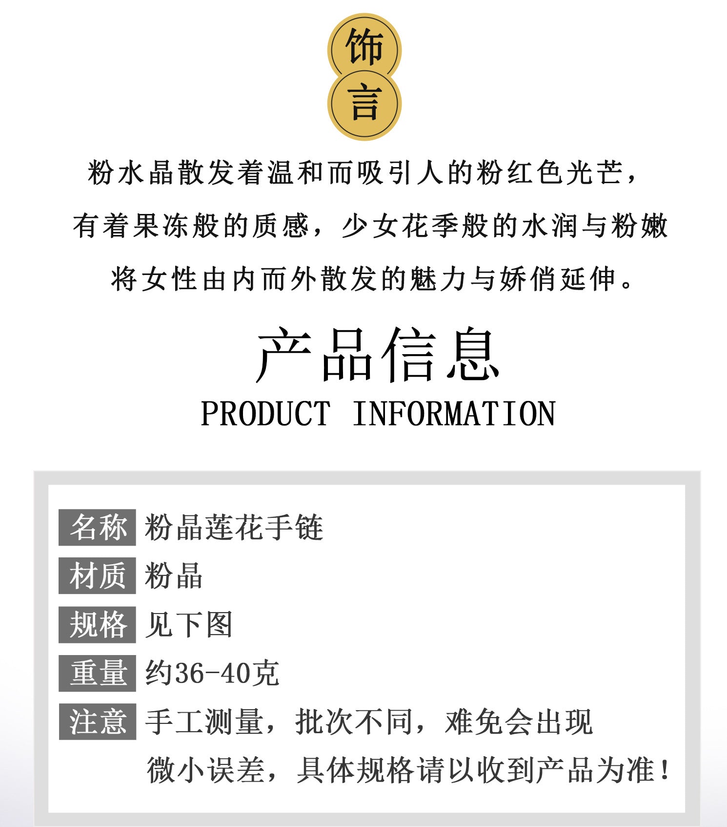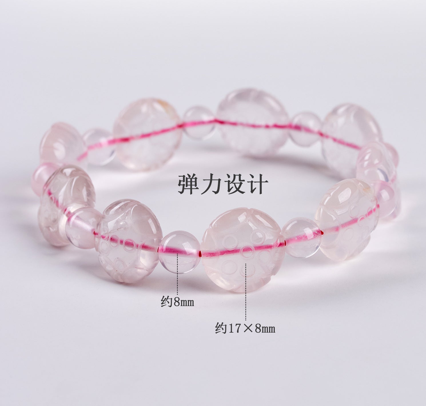 and the soft pink hue of the crystal embodies this principle, promoting resilience and gentle strength in life's journey. Each bead is carefully selected for its clarity and color, ensuring the bracelet not only enhances beauty but also serves as a protective talisman. In Chinese culture, the lotus signifies continuous renewal and spiritual awakening, making this accessory a perfect companion for meditation or mindful living. Embrace its energy to invite love, calm, and abundance into your everyday experience.