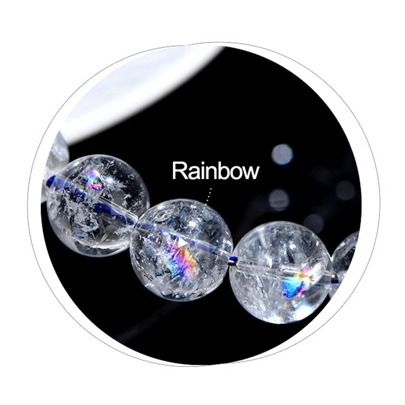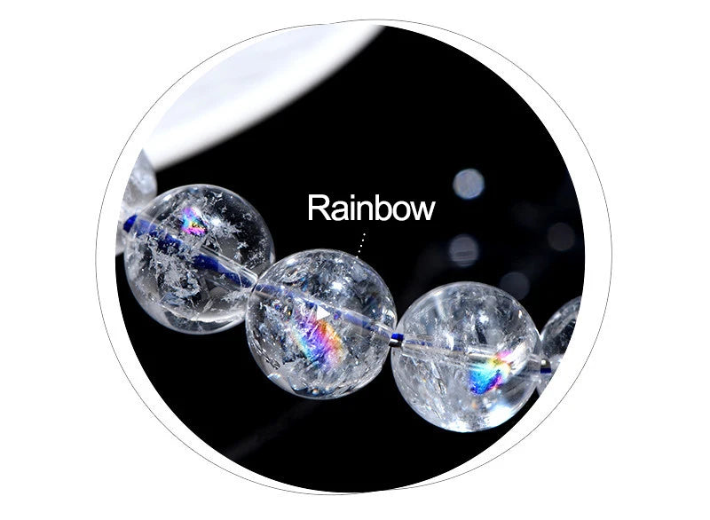 In the roundness of a bead lies an ancient image: circle without break, heaven and earth in harmony. This Natural Rainbow White Crystal & Jade Round Bead Bracelet is crafted from natural white crystal beads that catch the light with gentle rainbow flashes, interspersed with small genuine jade accents. Each bead, hand-selected and hand-strung, is an individual of the earth yet joined into a seamless cycle — a tactile emblem of continuity and protection.