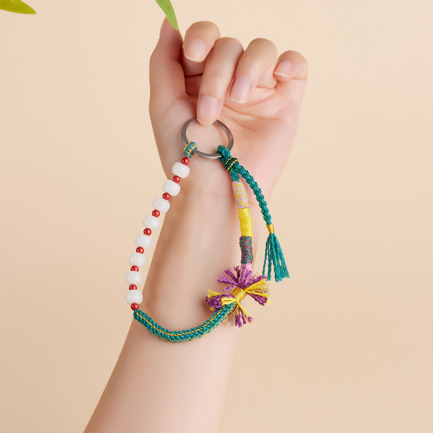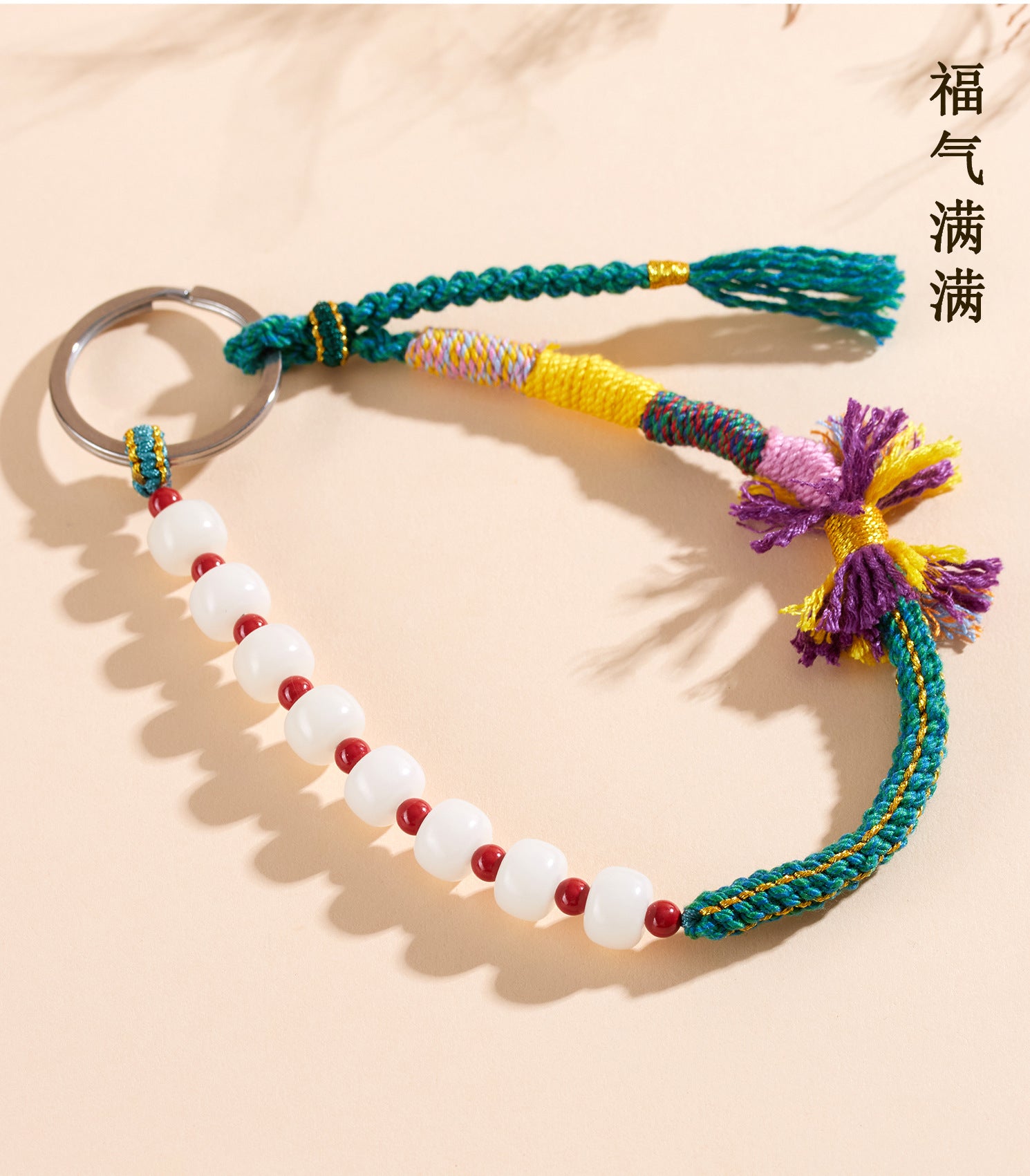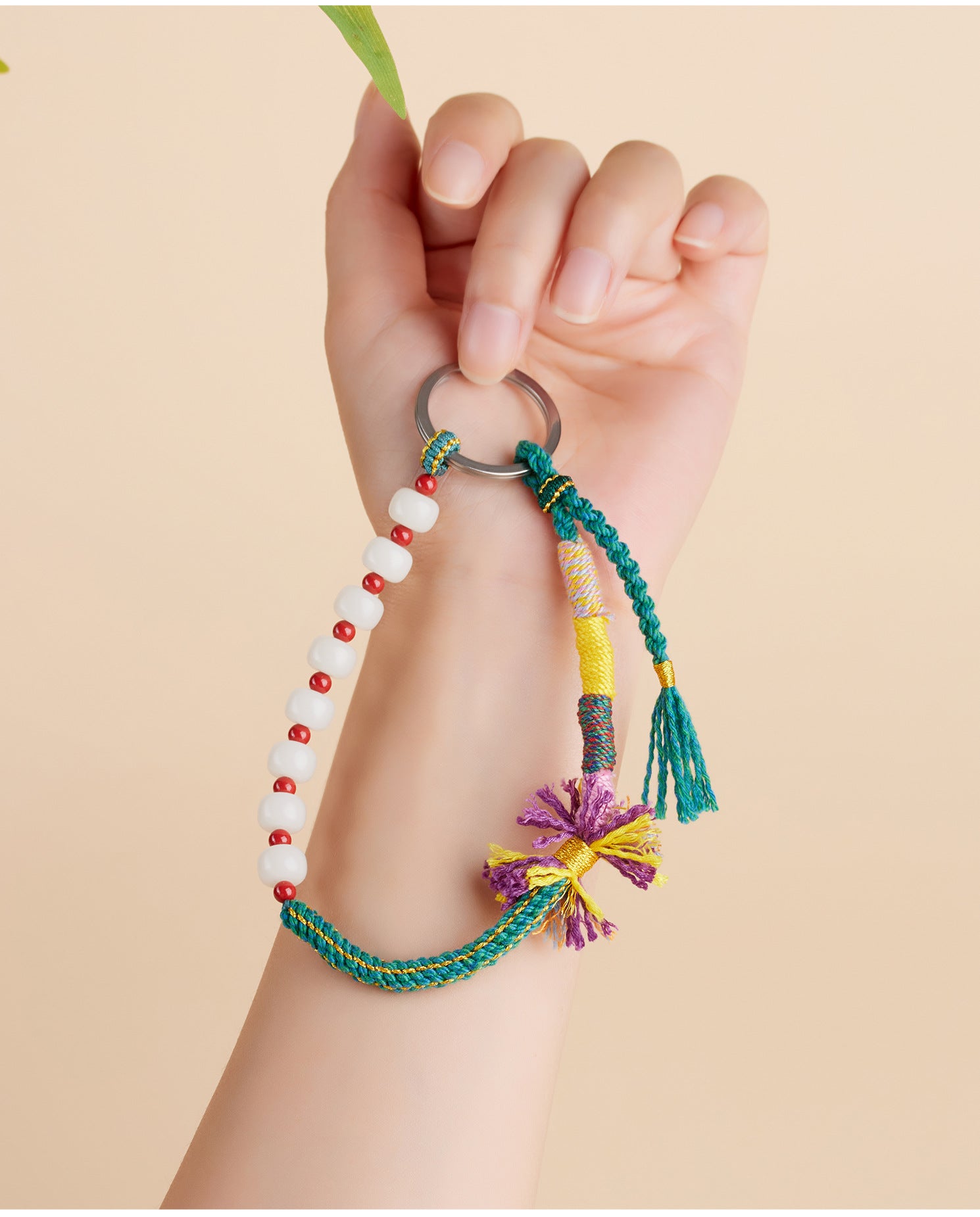 Infused with Bodhi seeds for enlightenment and a Tibetan-style pom-pom, this keychain blends spiritual depth with artistic charm.