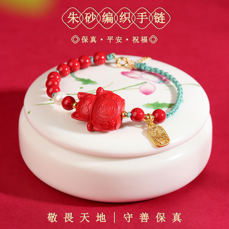 Cinnabar, known as 'vermilion' in ancient traditions, has been revered for millennia as a stone of protection and vitality. In Chinese culture, it is often associated with the fire element, symbolizing passion, courage, and the life force that drives prosperity. This Natural Cinnabar Lucky Cat Hand-Woven Bracelet embodies this legacy, combining raw cinnabar beads with a hand-woven red string and a charming Lucky Cat—a symbol of inviting wealth and joy. As the I Ching (Book of Changes) teaches,