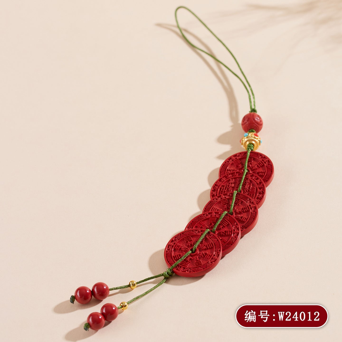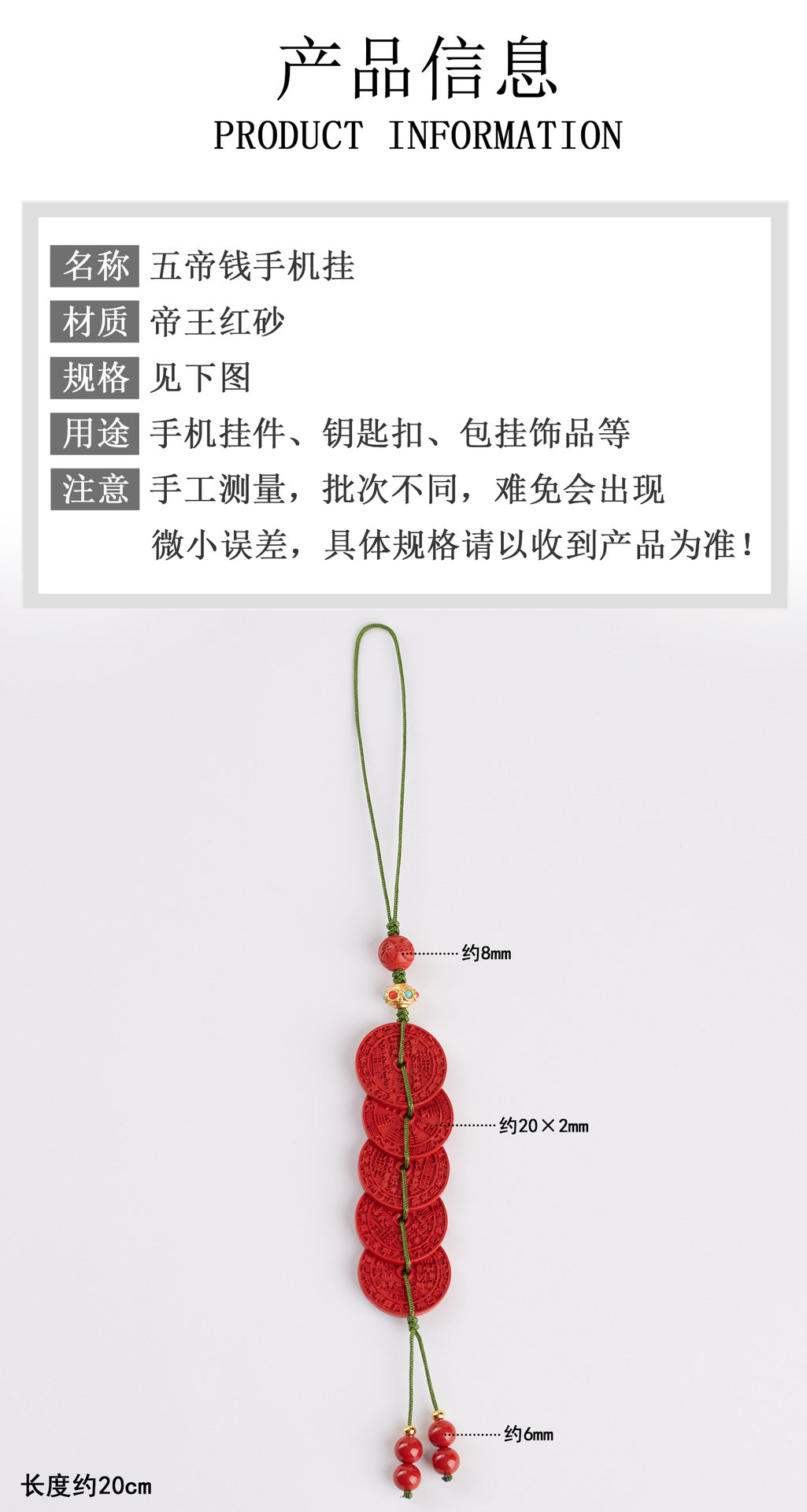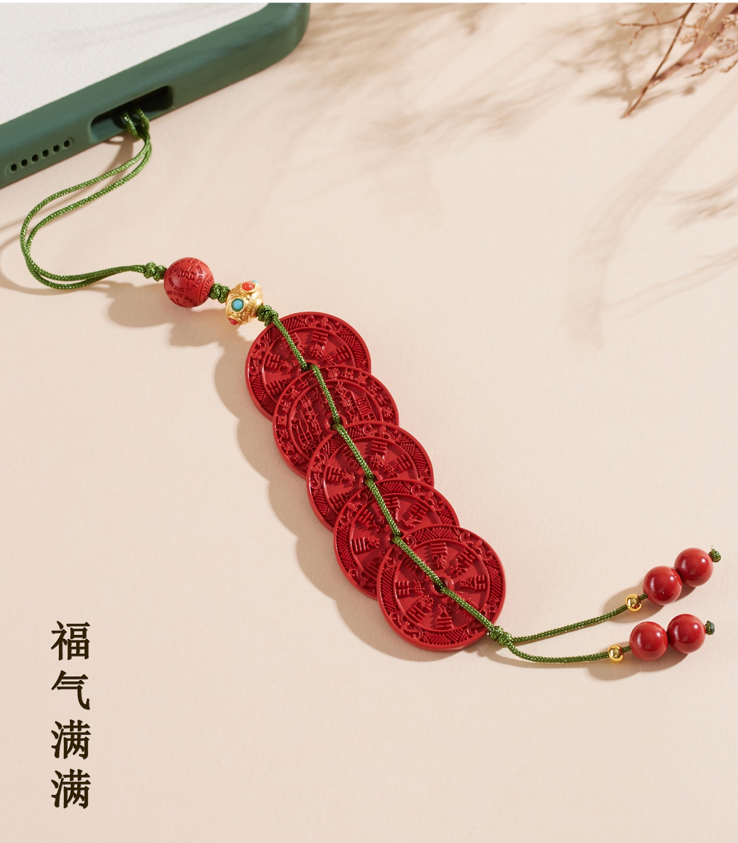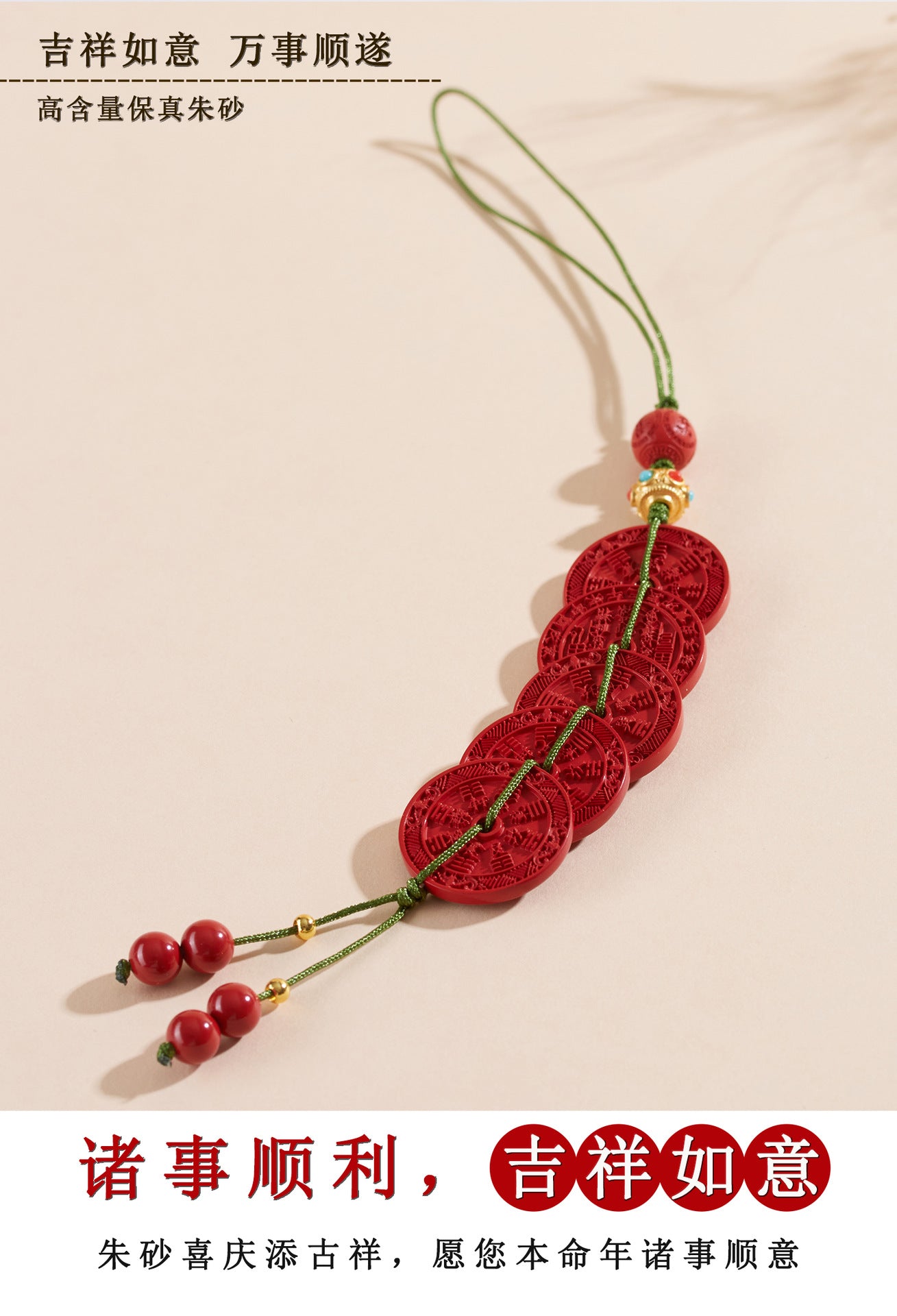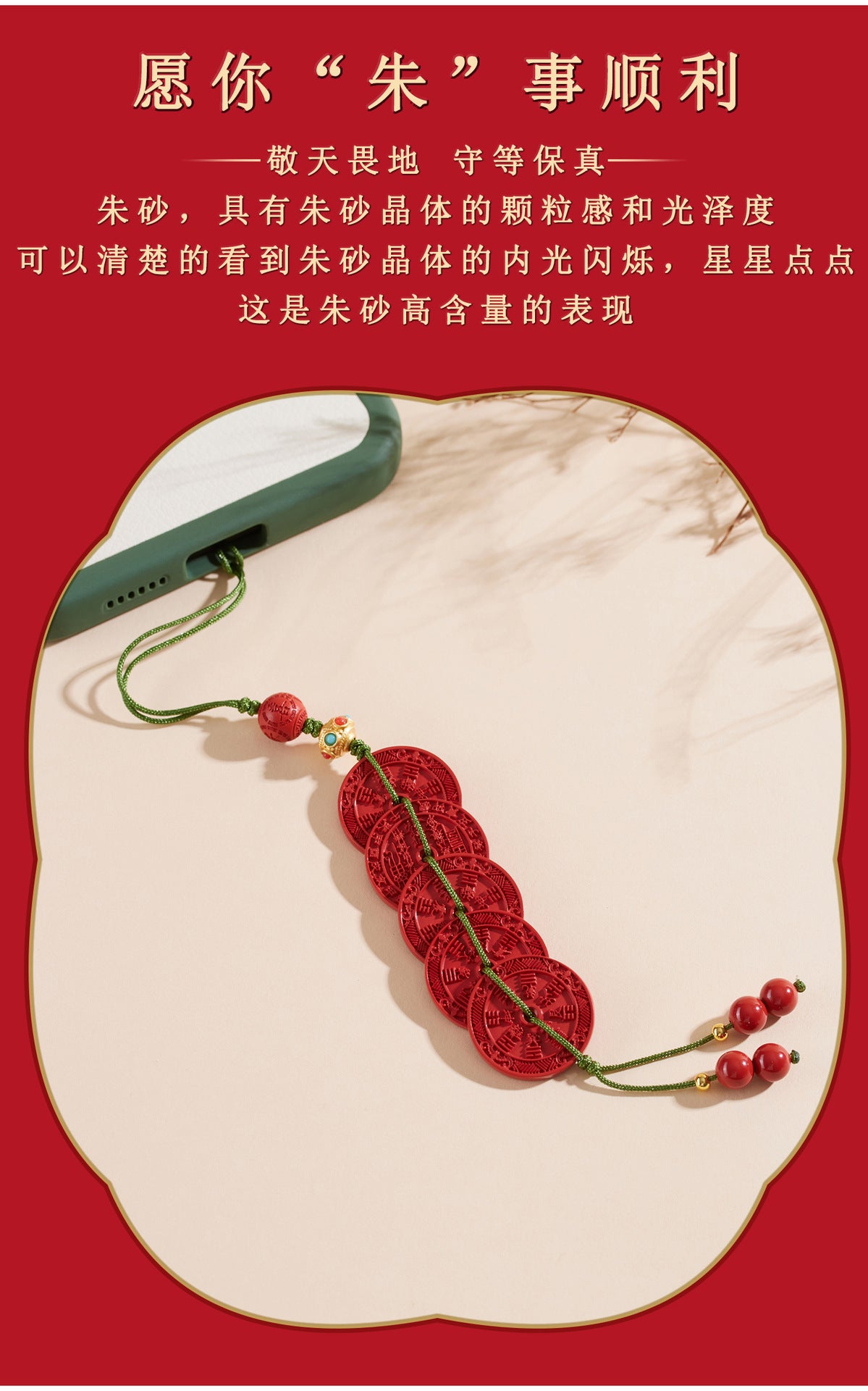 Here, the cinnabar's vibrant red represents the fire element, igniting passion and drive, while the Five Emperors Coin—a symbol of historical emperors—anchors earthly authority. Together, they create a harmony of elements, guiding the wearer toward success and stability. As the classic text suggests, aligning with natural cycles brings boundless opportunities.