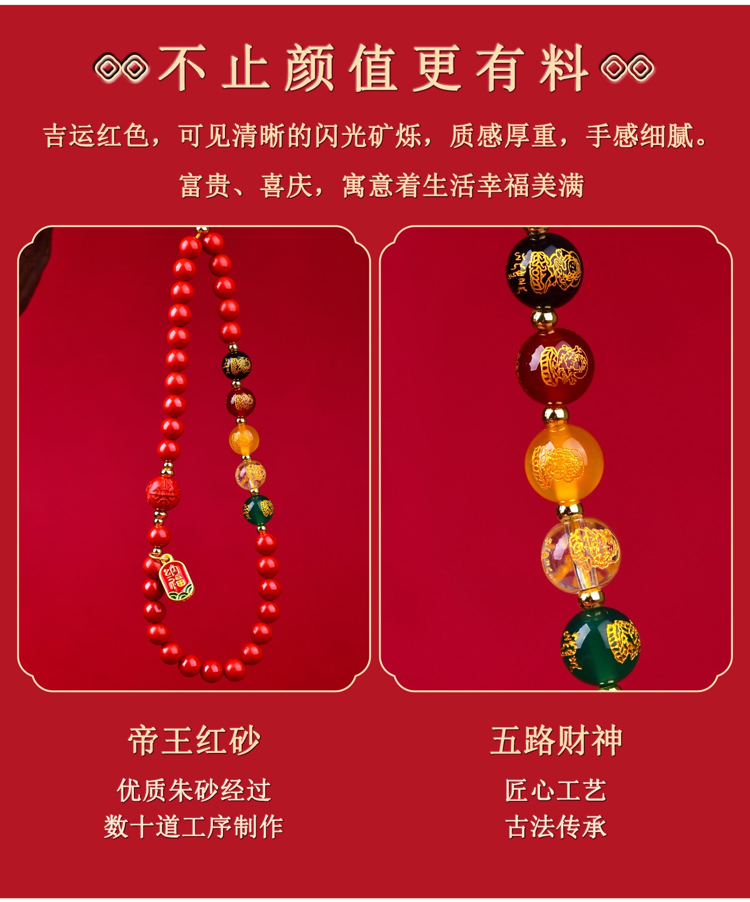 Embrace this fusion of nature and numerology. Let the cinnabar's grounding energy and the Five-Way God's encompassing blessing guide you toward a life of fulfillment and financial grace.