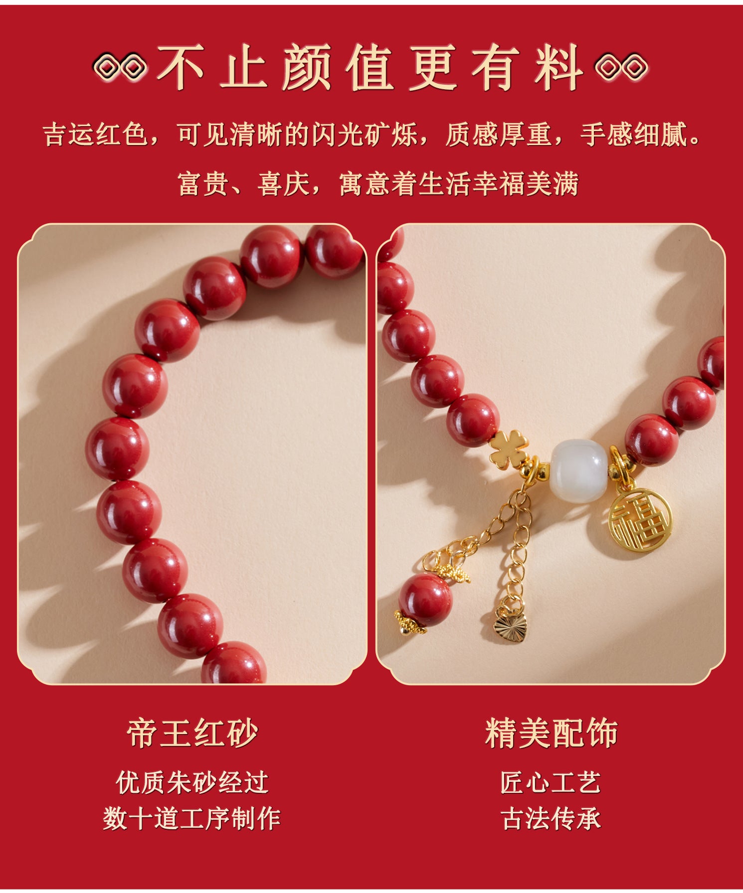 From a Feng Shui perspective, cinnabar is believed to ward off malevolent forces and enhance wealth luck, while jade attracts harmony and good fortune. The bracelet's design aligns with the principle of 'Qi' (energy) circulation, ensuring that positive vibes surround the wearer. As the old saying goes, "Where the heart is kind, the energy follows." By wearing this piece, one not only adorns the body but also nurtures the soul, encouraging a life filled with purpose and grace.