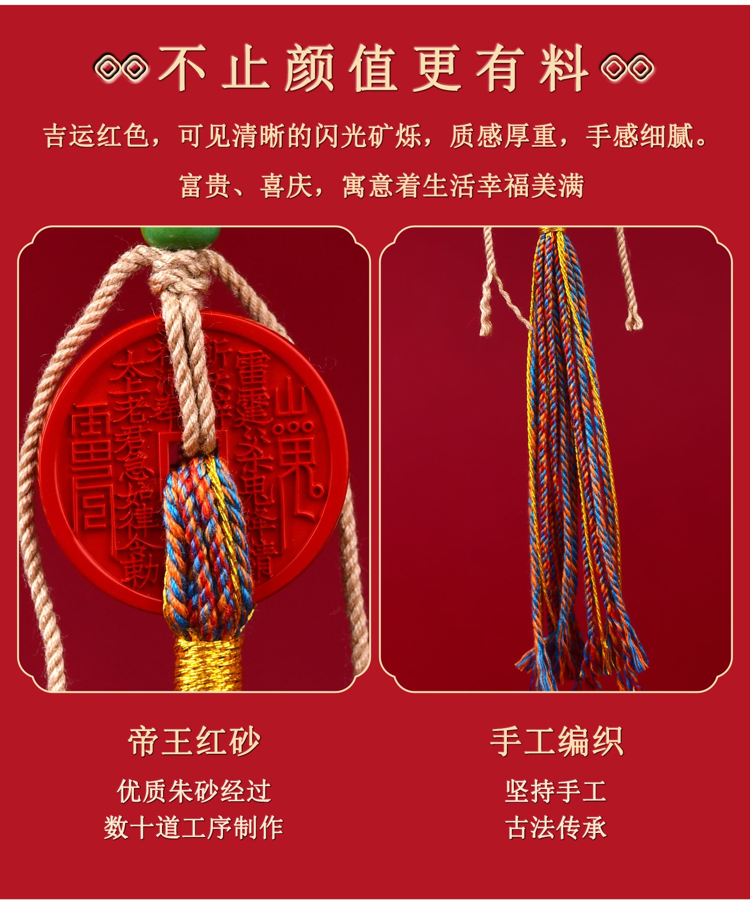 This wisdom mirrors the enduring vitality of cinnabar, inspiring wearers to cultivate inner strength and resilience. The pendant's deep red hue, akin to the rising sun, represents the unyielding spirit that overcomes adversity. When carried as a bag charm, it serves as a reminder to align with the cosmic flow, attracting opportunities and warding off misfortune.