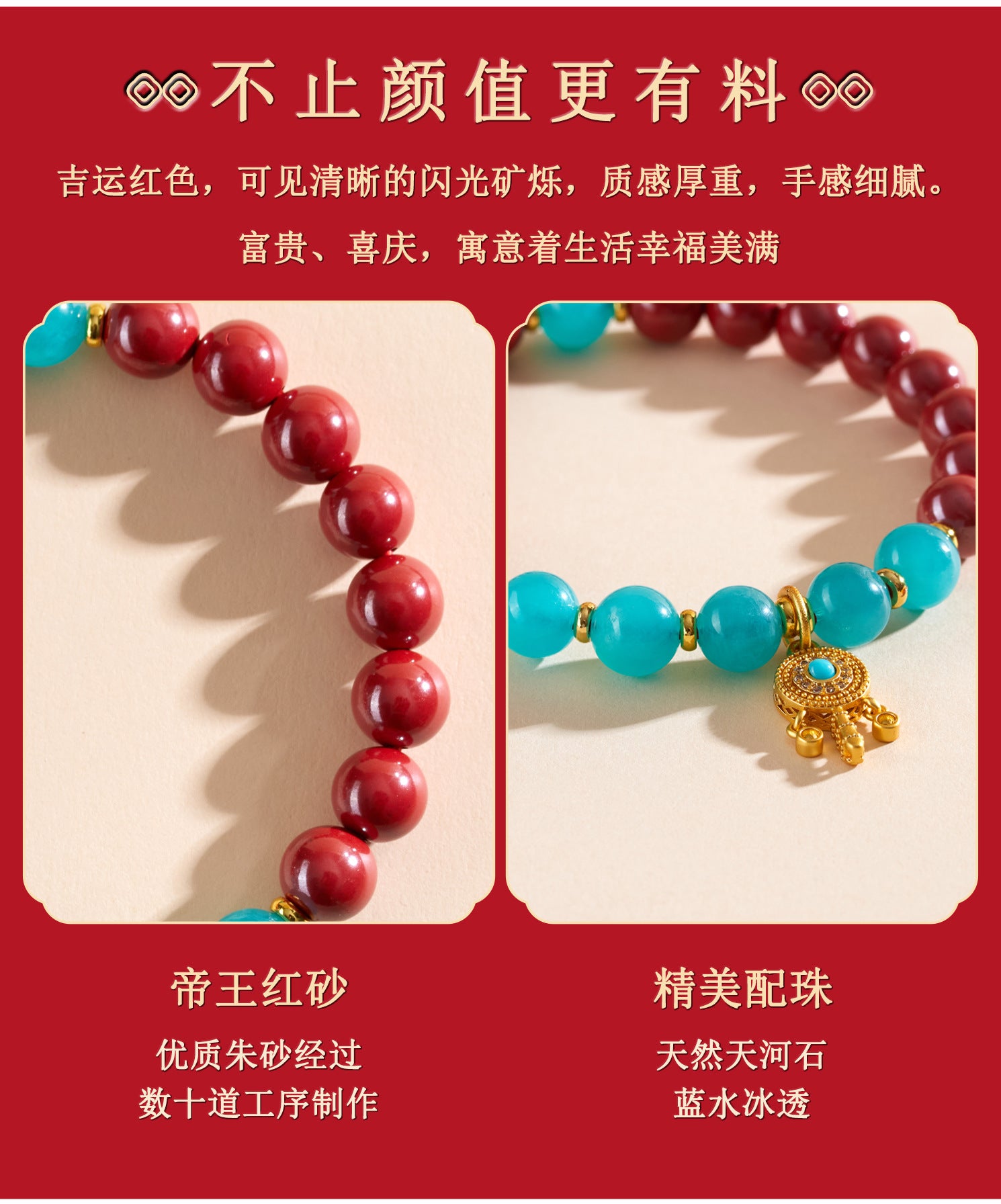 Featuring high-content natural cinnabar beads, each one radiates vibrant energy to shield against negativity and invite prosperity into your life.