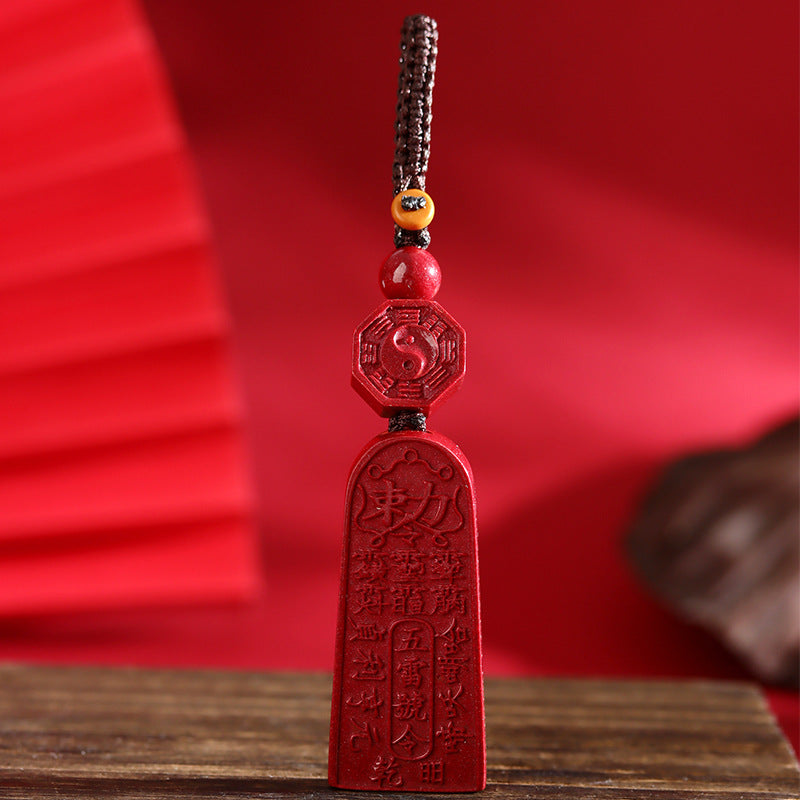 In the annals of Taoist tradition, cinnabar is revered as the "essence of the sun," a stone of purification and protection that has been used in alchemy and rituals for millennia. This Five Thunder Command keychain, fashioned from natural raw ore cinnabar and adorned with purple gold sand, channels this ancient wisdom into a modern guardian piece. The design draws from celestial thunder deities, symbolizing the power to dispel negativity and summon blessings.