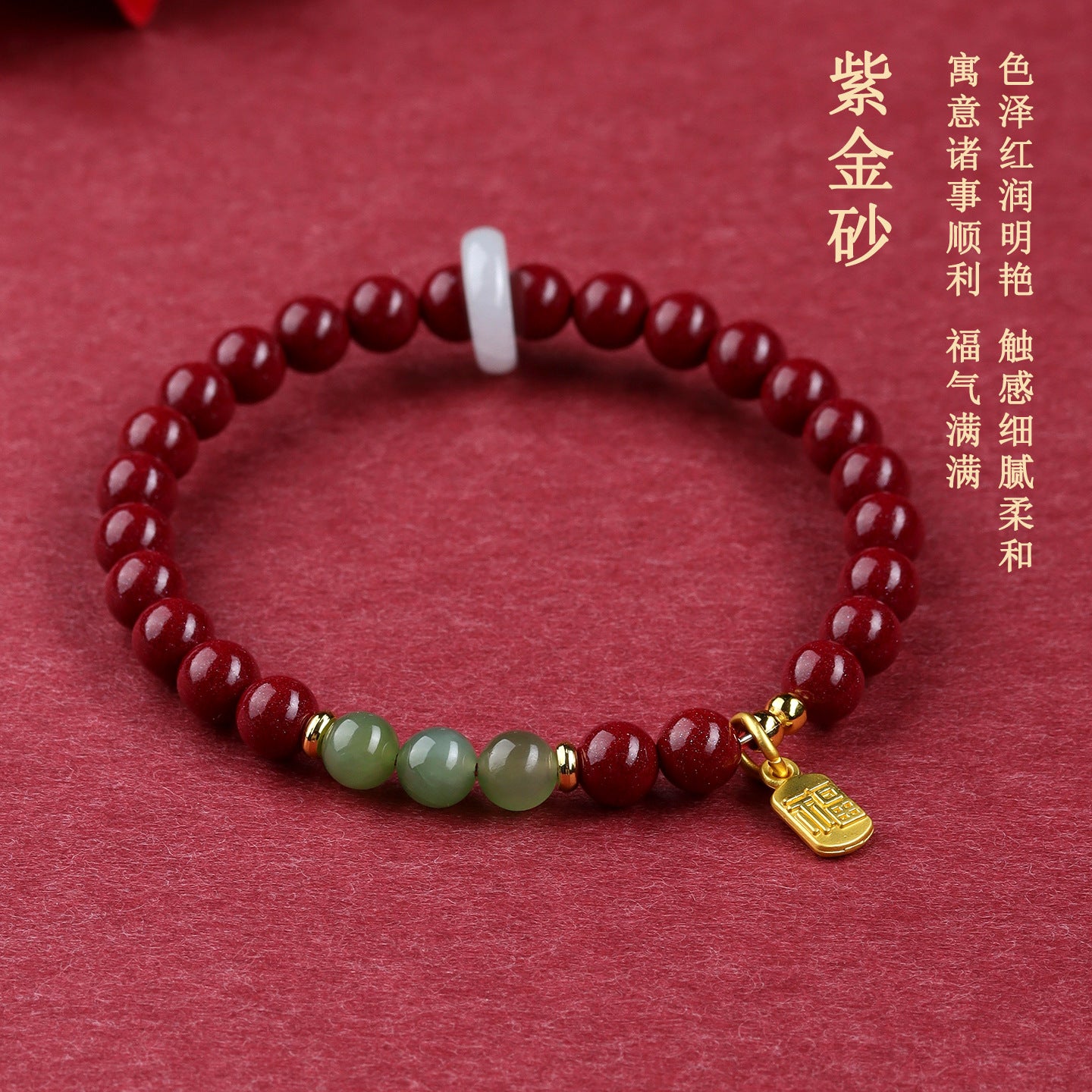 In the ancient traditions, purple gold cinnabar is revered as the 'essence of fire,' symbolizing protection, vitality, and wealth. Sourced from natural raw ore, this bracelet harnesses the pure energy of the earth, blending with Hetian jade's nurturing essence and southern red obsidian's grounding force. As the I Ching (Book of Changes) teaches: