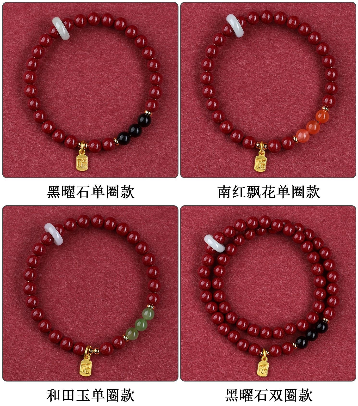 Wearing this bracelet is like carrying a miniature universe on your wrist. The single or double circle design reflects the cyclical nature of life, echoing Buddhist teachings on karma and renewal. Each circle symbolizes completeness and the endless flow of positive energy, helping to calm the mind and enhance mindfulness. In feng shui, cinnabar is believed to ward off evil and attract abundance, while the jade and obsidian stabilize the aura. As an old proverb says,