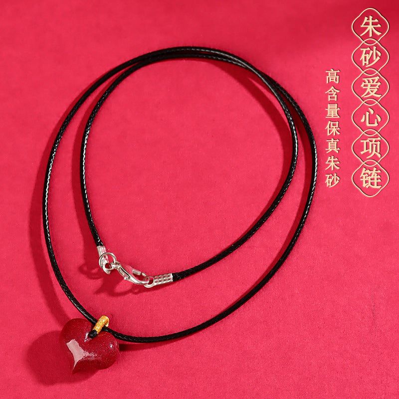 Featuring high-content raw ore cinnabar, this heart pendant radiates spiritual energy and protection. Its natural variations add unique character, symbolizing authenticity and strength.