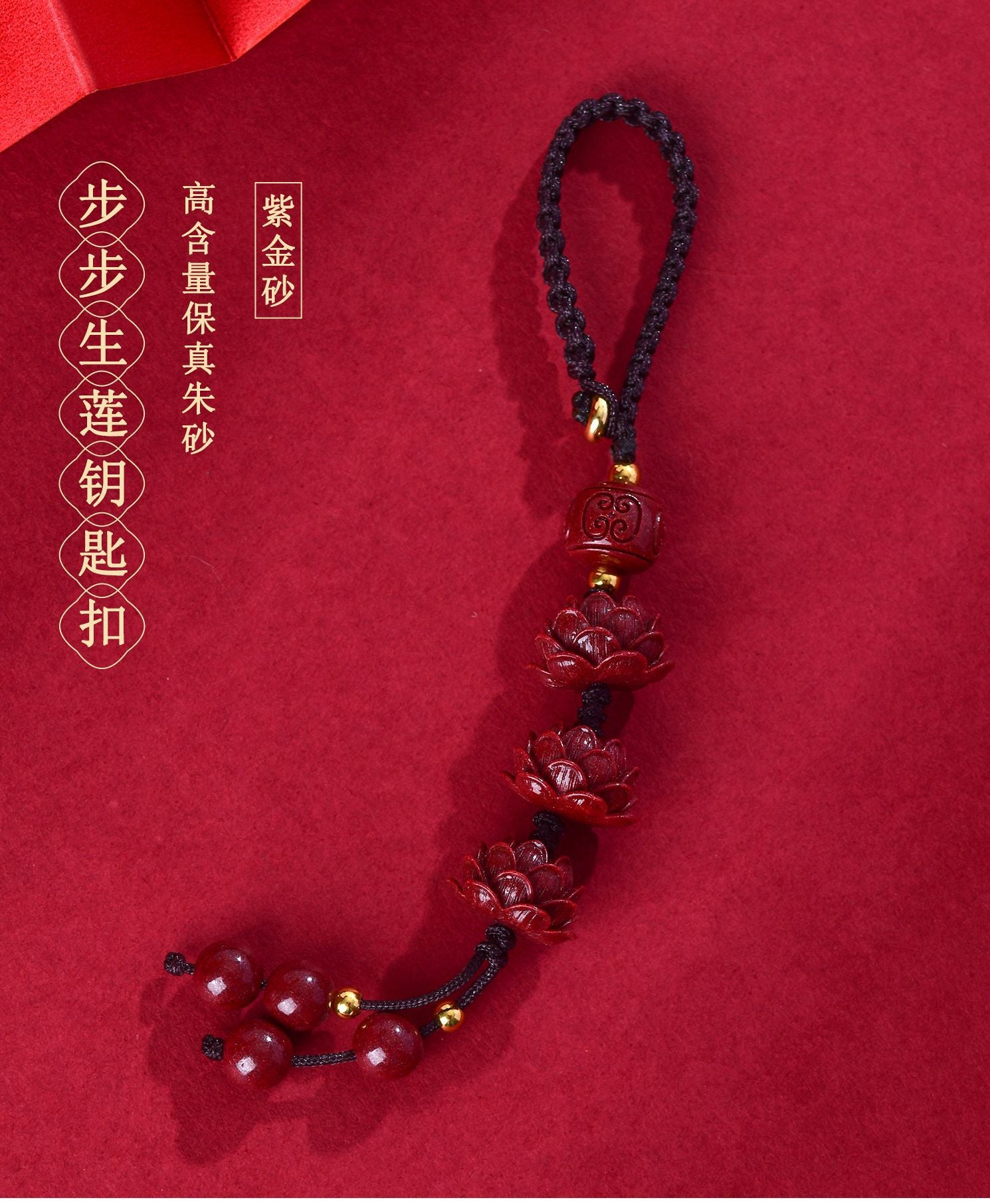 From a feng shui perspective, cinnabar is famed for warding off evil and attracting abundance. Hanging this keychain in your car or bag creates a protective aura, ensuring safe travels and financial luck. The step-by-step design echoes the idiom \"步步高升\" (rising step by step), encouraging continuous improvement and fortune. As you carry this talisman, it radiates a calming energy, turning your surroundings into a sanctuary of peace and prosperity.