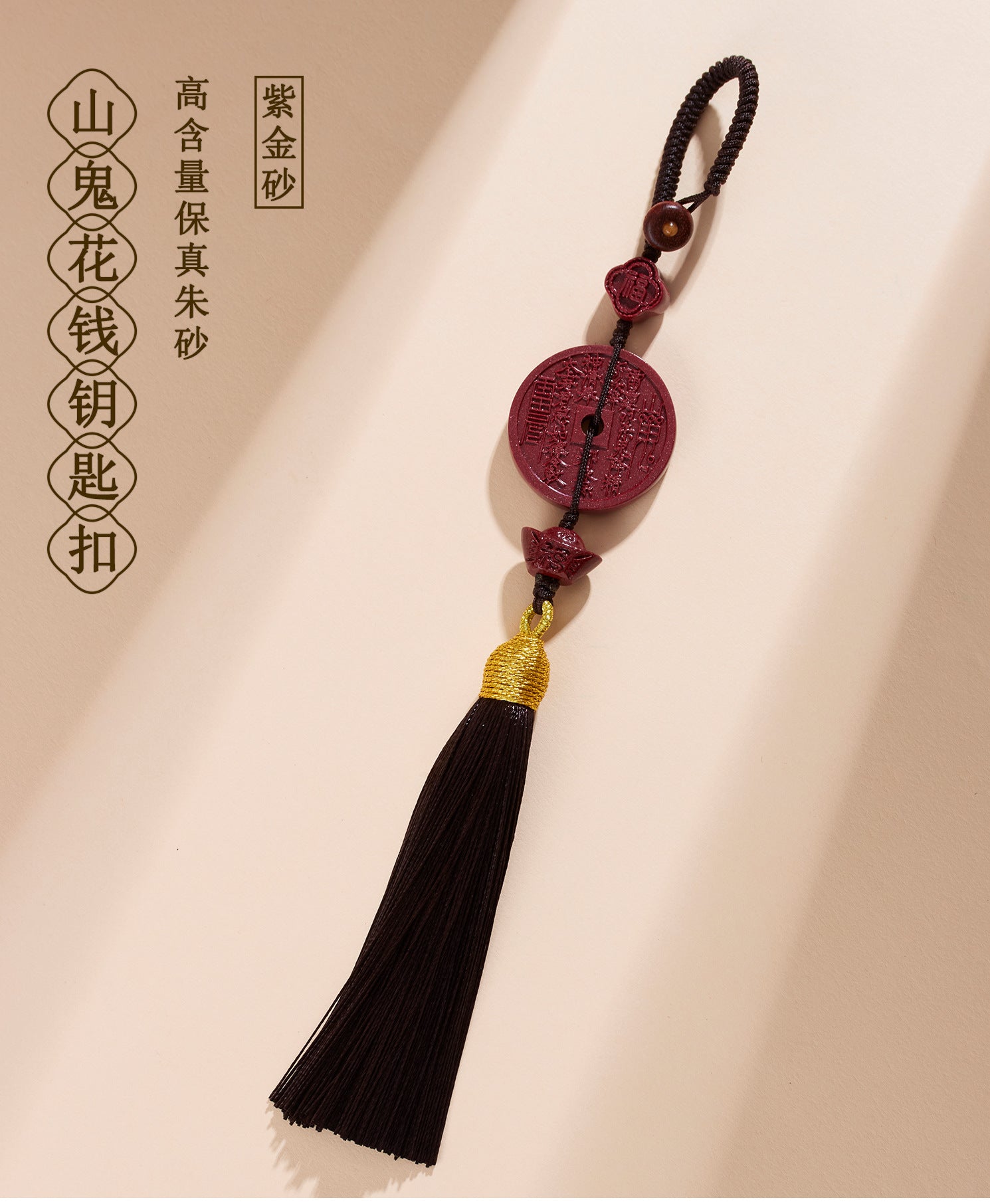 Daoist philosophy emphasizes the balance of yin and yang, and this keychain embodies that equilibrium. The purple gold cinnabar, with its fiery essence, complements the gentle flow of the handmade tassel, creating a synergy that harmonizes opposing forces. As the Dao De Jing teaches:
