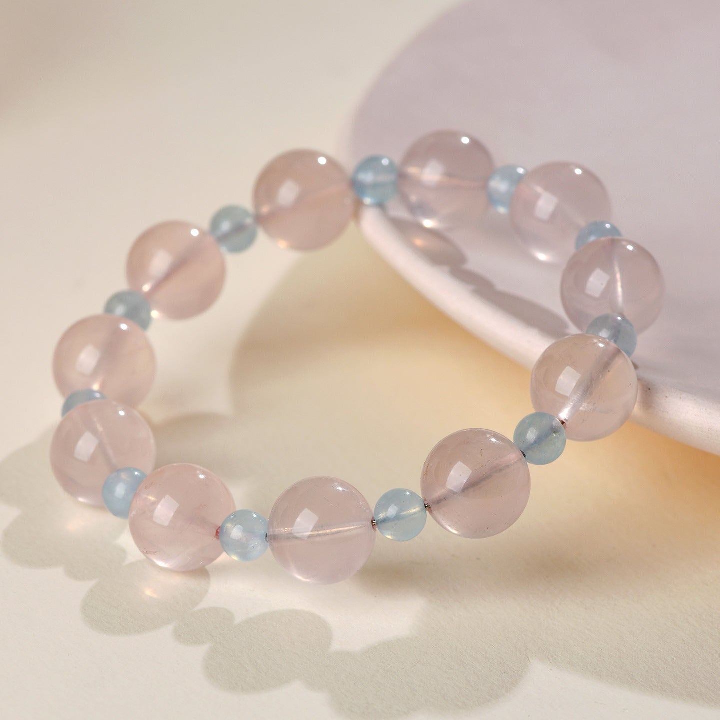 This bracelet, with its natural aquamarine crystals, symbolizes such harmony. Each bead, carefully selected and polished, represents the union of yin and yang—the feminine softness of pink and the calming blue undertones of aquamarine. Wearing it is a reminder to nurture relationships and seek inner peace, aligning with the cosmic flow of energy.
