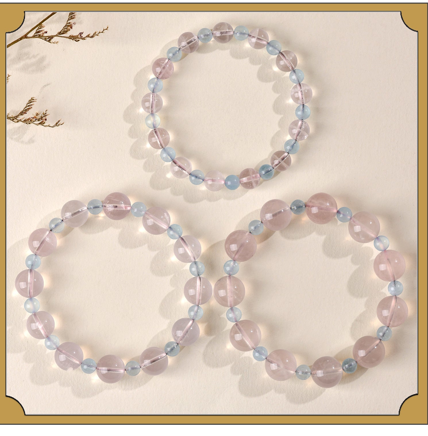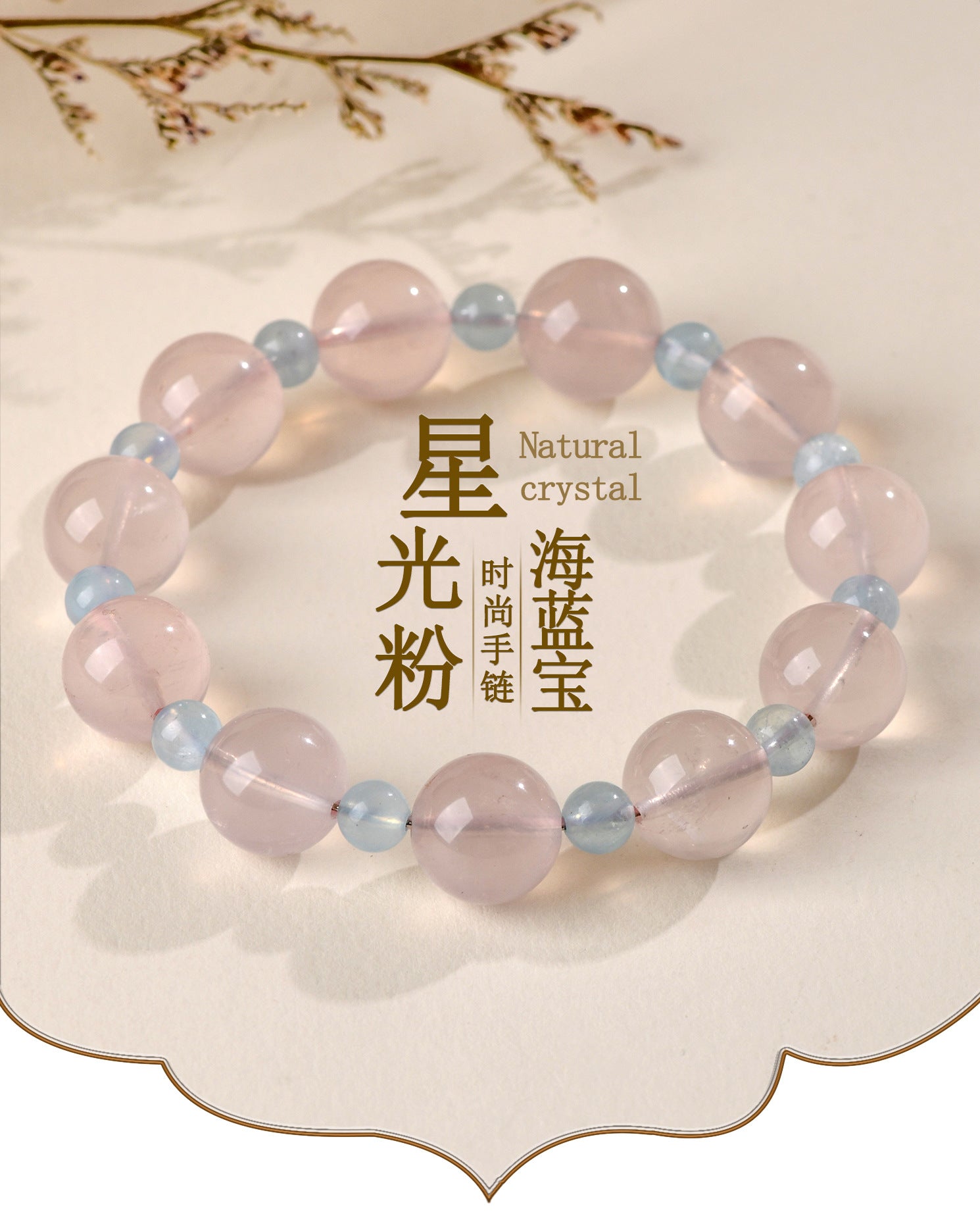 Crafted from natural materials, each bracelet is unique, with variations in color and pattern that reflect the individuality of its wearer. The lightweight design ensures comfort, while the crystalline structure is believed to store and amplify intentions. Whether worn for its beauty or its metaphysical properties, this starlight pink aquamarine bracelet is a testament to the timeless wisdom that true wealth lies in love and inner peace.