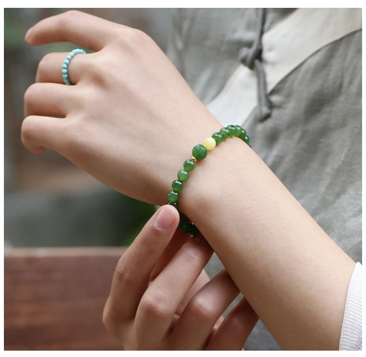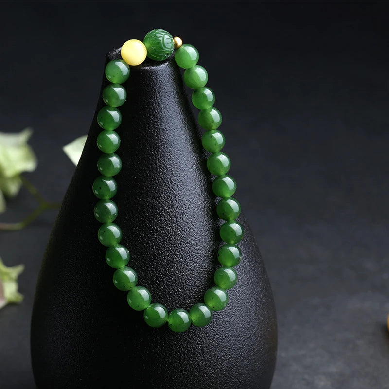 In the I Ching it is written, '天行健, 君子以自强不息' — heaven moves with vigor; the gentleman strives ceaselessly. By the same token, a single circle of jade at the wrist becomes a modest talisman of perseverance: quiet, unobtrusive, yet constant. Each bead, warm to the gaze but cool to the touch, invites composure. To wear this bracelet is to carry a gentle reminder of steady cultivation, a portable locus of calm amid modern haste.