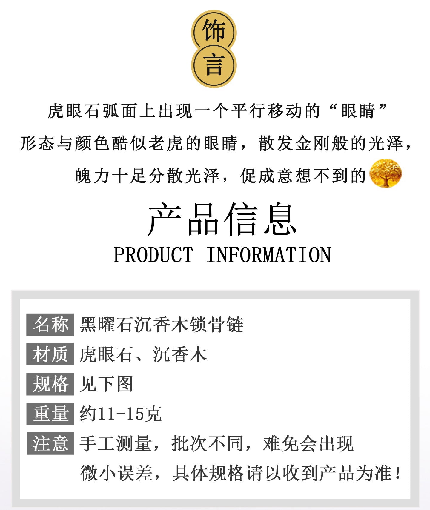 Buddhist traditions honor Agarwood for its role in meditation, helping to quiet the mind and connect with higher consciousness. The clavicle chain design, resting close to the heart, encourages mindfulness and self-reflection. Imagine the necklace as a string of prayer beads, each Tiger Eye and Agarwood piece a step toward enlightenment. As the Diamond Sutra reminds us, 'Form is emptiness, emptiness is form'—this piece transcends mere adornment, becoming a tool for spiritual growth.