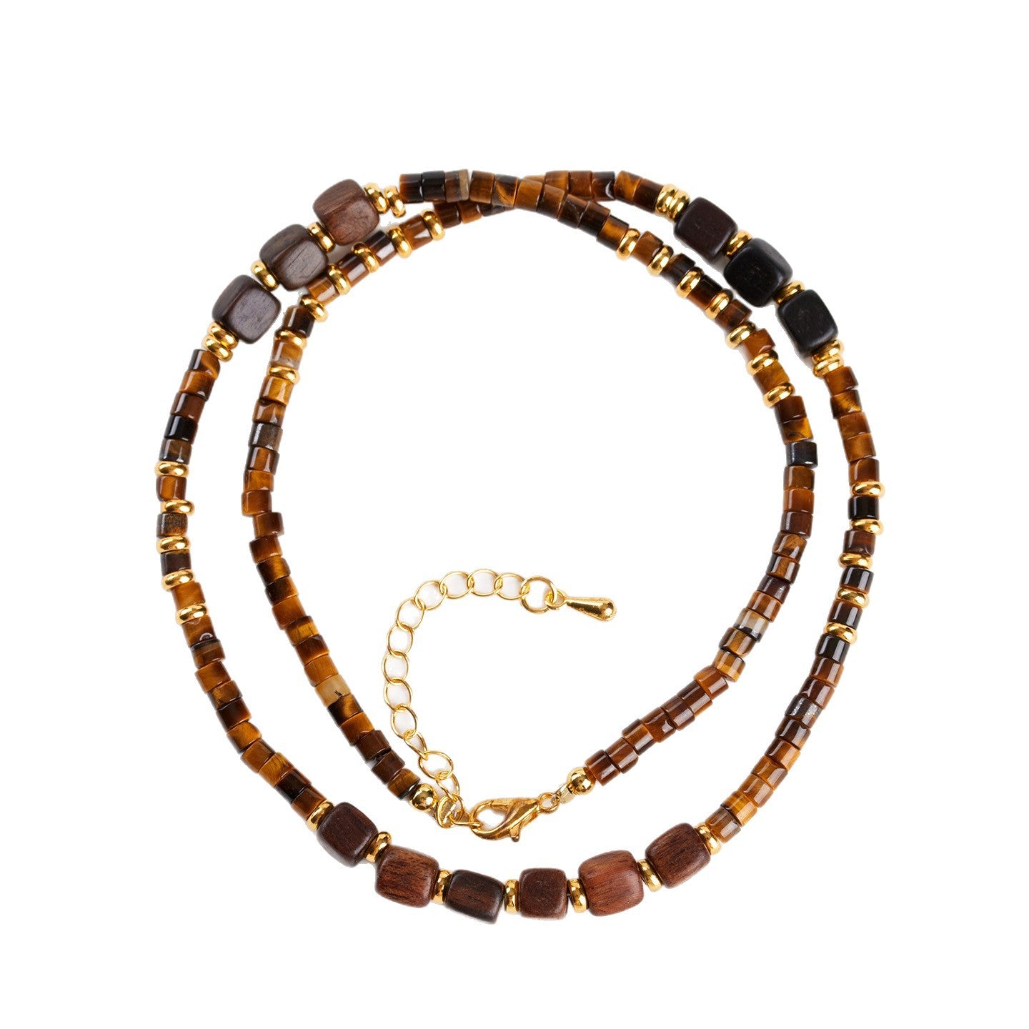 Crafted with natural materials, each necklace is unique, reflecting the imperfections and beauty of the natural world. The Tiger Eye's chatoyancy—a cat's eye effect—symbolizes insight and clarity, while the Agarwood's rich texture represents depth and resilience. Wearing it is not just a fashion statement but a commitment to living in alignment with cosmic rhythms. Let this necklace be your companion in navigating life's journey, attracting prosperity, and shielding you from harm. As the ancients whispered, "The gem guards the soul, the wood soothes the spirit"—may it bring you peace, power, and endless blessings.
