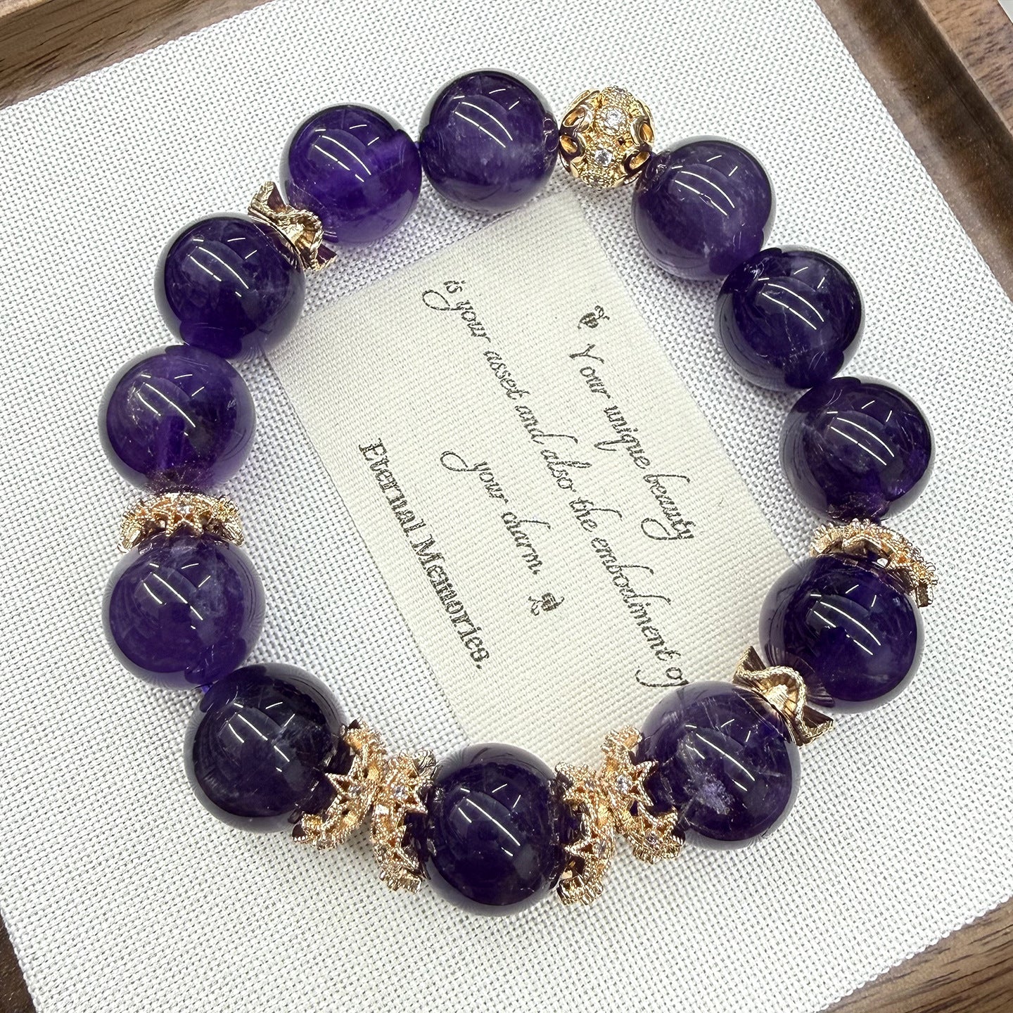 Thus, this amethyst bracelet is more than an accessory; it is a symbol of wisdom, a tool for emotional balance, and a conduit for positive energy. Let its gentle vibrations guide you toward a life of abundance, clarity, and eternal harmony.