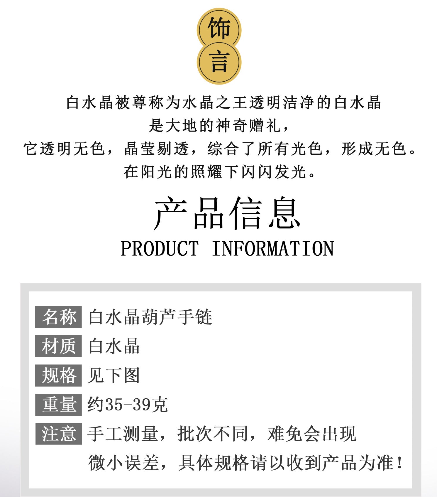 In Daoist philosophy, the gourd represents the harmony of yin and yang—its rounded shape symbolizing the universe's balance. The white crystal enhances this by dispelling negative energies and inviting positive chi. As the saying goes, "When the mind is clear, fortune follows." This bracelet acts as a conduit for such energy, helping the wearer navigate life's challenges with grace and resilience.