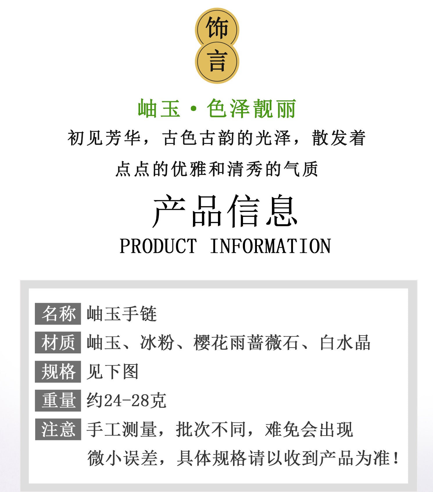In the rich tapestry of Chinese culture, jade has long been revered as the 'stone of heaven,' embodying virtues of purity, wisdom, and eternal protection. This Natural Xiuyan Jade Bracelet, with its ice pink and white crystals intertwined with cherry blossom motifs, captures the essence of spring's renewal and the timeless flow of positive energy. As the I Ching wisely states, 'The superior man is quiet and calm, waiting for the appointment of heaven.' Wearing this bracelet serves as a gentle reminder to align with nature's rhythms, fostering inner peace and inviting prosperity into one's life.