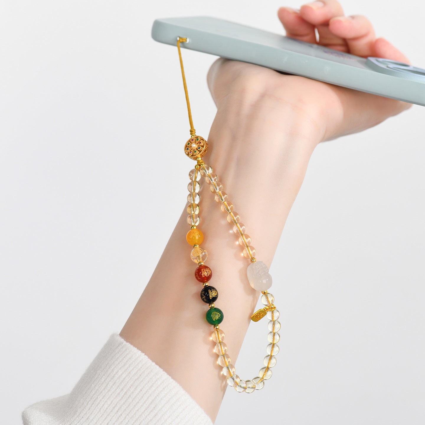 "Heaven moves vigorously, and the gentleman strives unceasingly."This natural yellow crystal pendant, adorned with the mighty Pixiu and the Five-Way Wealth God, embodies this relentless pursuit of prosperity. Yellow crystal, known as the "stone of wealth" in traditional Chinese culture, resonates with the earth's golden energy, symbolizing the accumulation of riches and wisdom. Its vibrant hue mirrors the sun's brilliance, attracting financial blessings from all directions, much like the Five-Way Wealth God who oversees fortune in career, health, relationships, wisdom, and luck.