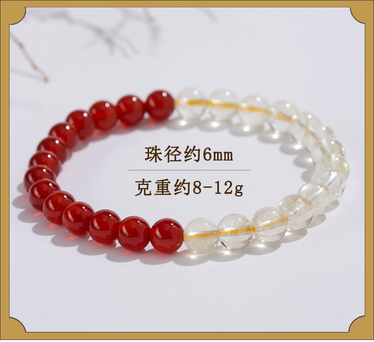 "Heaven and earth unite, and all things are born."This bracelet, crafted from natural yellow crystal and red agate, embodies this divine union, harmonizing the energies of wealth and safety. Yellow crystal, known as the stone of solar energy, resonates with the sun's vitality, attracting abundance and confidence. Red agate, with its grounding essence, offers a shield against negativity, creating a balance of yin and yang as taught in Taoist philosophy.